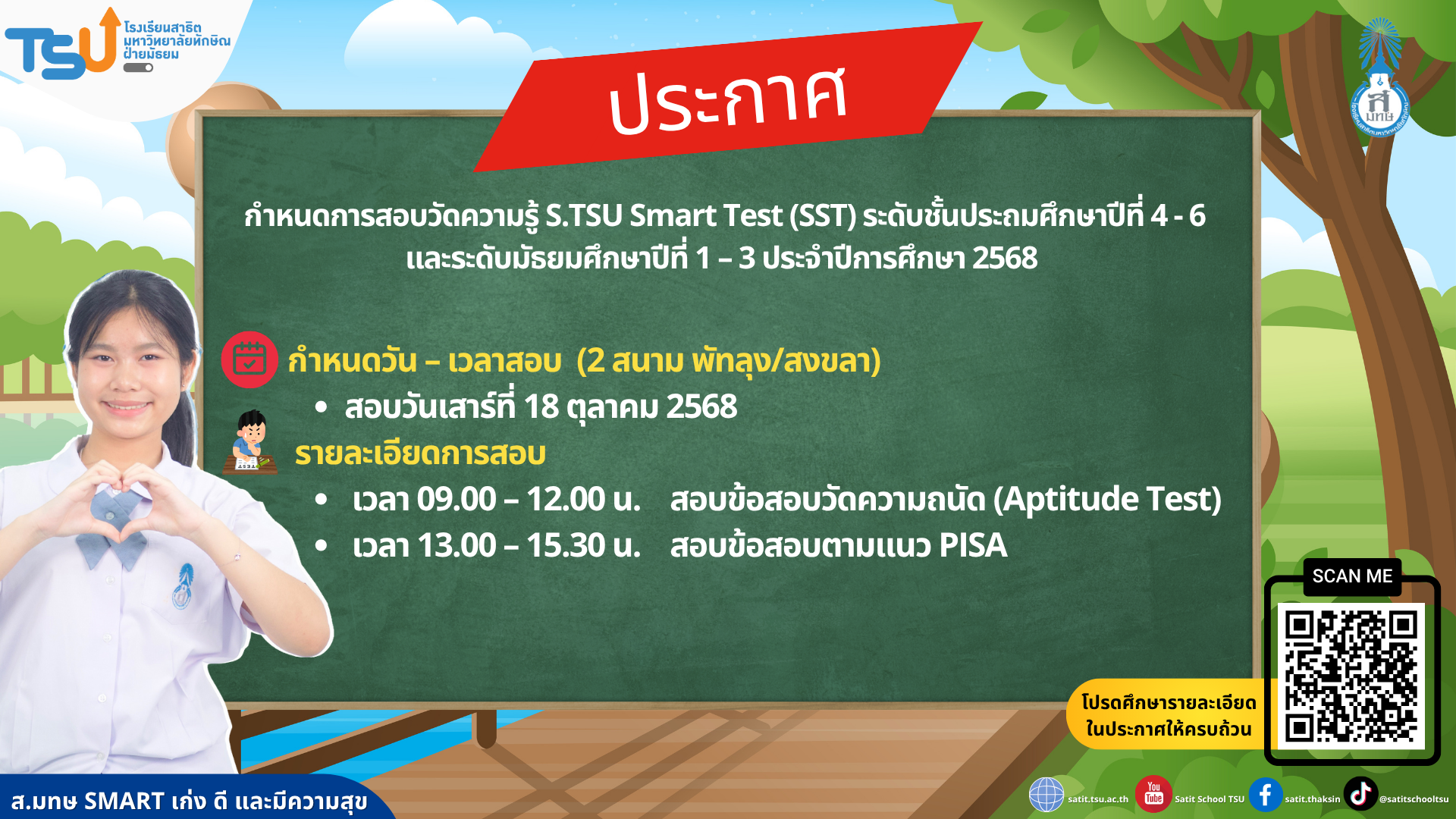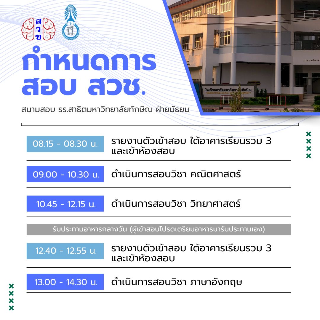 ประกาศรายชื่อเเละห้องสอบ การแข่งขันสอบวัดทักษะวิชาการระดับชาติ (สวช.) สนามสอบโรงเรียนสาธิตมหาวิทยาลัยทักษิณ ฝ่ายมัธยม