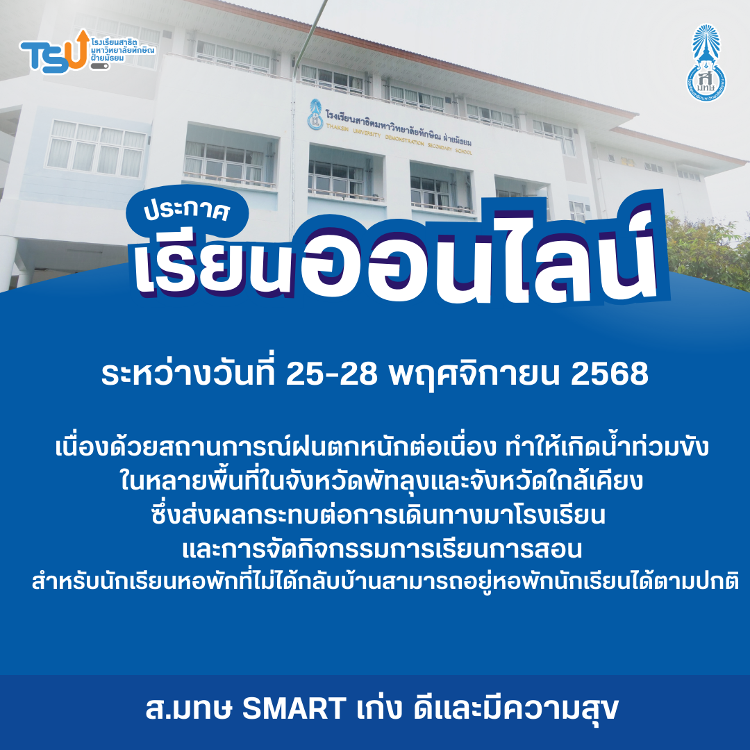 ประกาศจัดการเรียนการสอนแบบออนไลน์ ระหว่างวันที่ 25 – 28 พฤศจิกายน 2568
