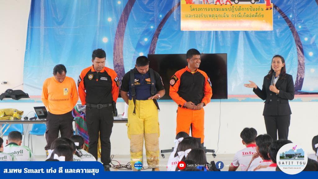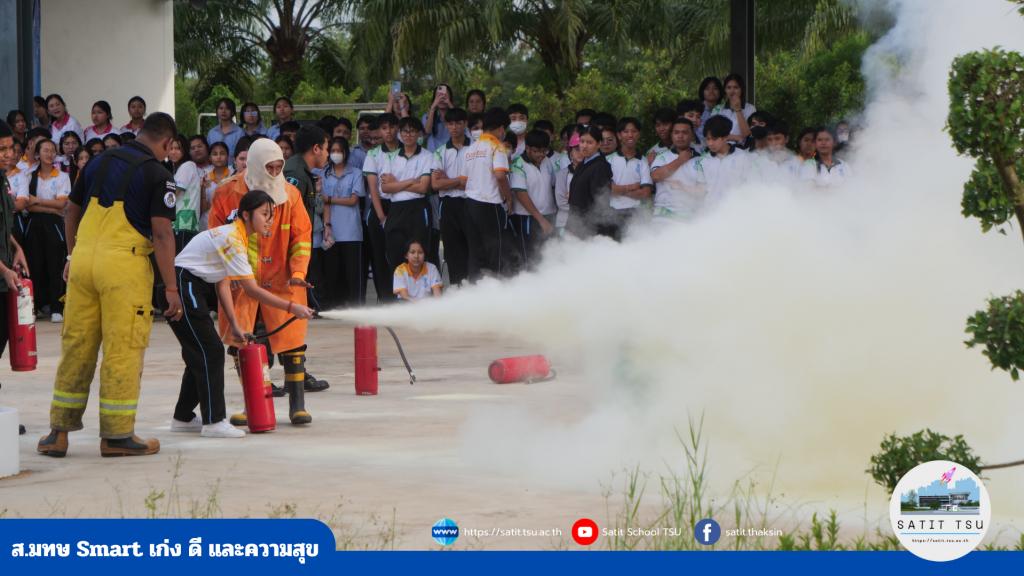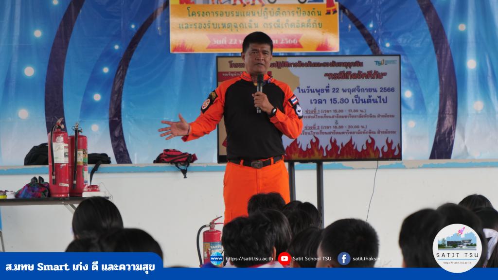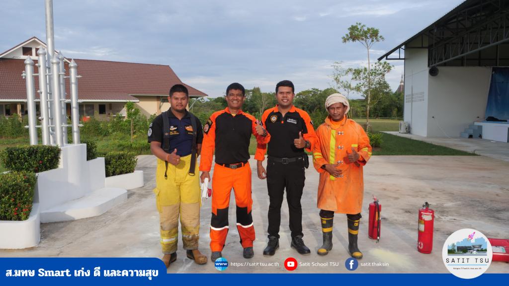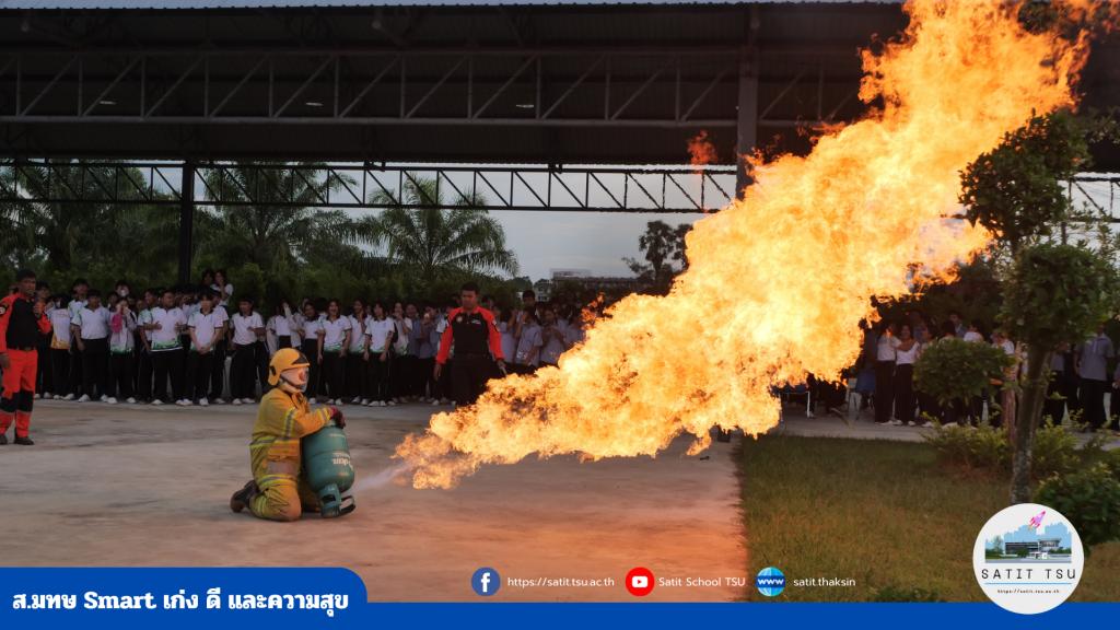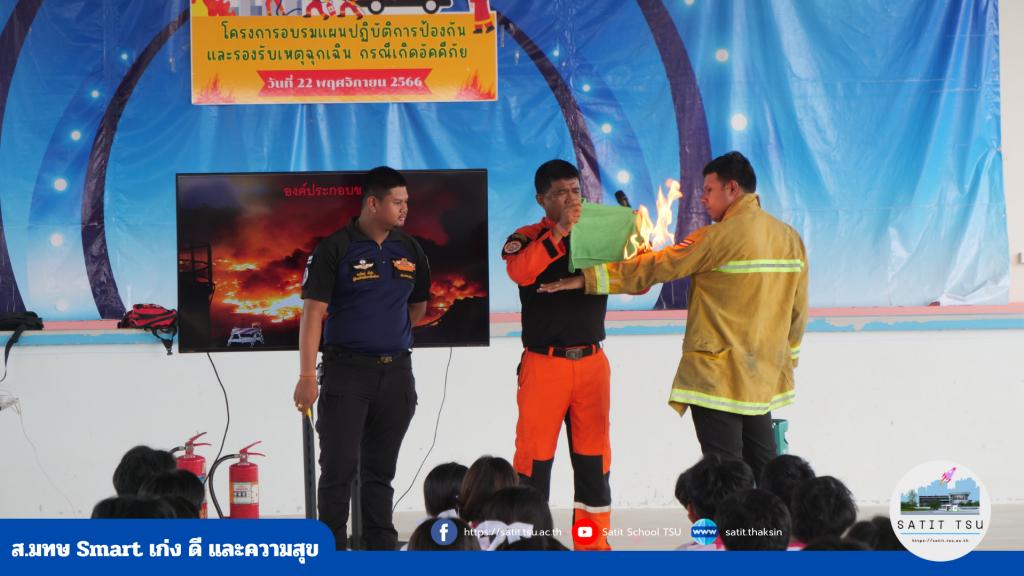 วันที่ 22 พฤศจิกายน 2566 โรงเรียนสาธิตมหาวิทยาลัยทักษิณ ฝ่ายมัธยม จัดโครงการอบรมแผนปฏิบัติการป้องกันและรองรับเหตุฉุกเฉิน "กรณีอัคคีภัย" ณ โรงเรียนสาธิตฯ และหอพักนักเรียน ให้แก่นักเรียนและบุคลากร โดยนายสมบูรณ์ จุลสุรางค์ ผู้เชี่ยวชาญ (ตำแหน่งเดิมนักวิชาการ ฝ่ายกิจการนิสิตและพันธกิจสัมพันธ์ มหาวิทยาลัยทักษิณ) นายปัญญาวุธ เสนีย์ ตำแหน่ง พนักงานป้องกันและบรรเทาสาธารณภัย สังกัด สำนักงานป้องกันและบรรเทาสาธารณภัยจังหวัดพัทลุง และนาย ธนวัฒน์ เต็งรัง ตำแหน่ง ผู้ช่วยเจ้าพนักป้องกันและบรรเทาสาธารณภัย สังกัด กองป้องกันและบรรเทาสาธารณภัย อบจ.พัทลุง ให้ความรู้ หลักการและทฤษฎีเกี่ยวกับการป้องกันอัคคีภัย รวมถึงหลักการอพยพหนีไฟ ซึ่งในการดำเนินโครงการมีการจำลองสถานการณ์ซ้อมการอพยพหนีไฟ สร้างความตระหนัก และให้ความสำคัญกับการดับเพลิง และเป็นการเตรียมความพร้อมให้กับนักเรียนโรงเรียนสาธิตฯ เพื่อเอาตัวรอดเมื่อเจอสถานการณ์จริง