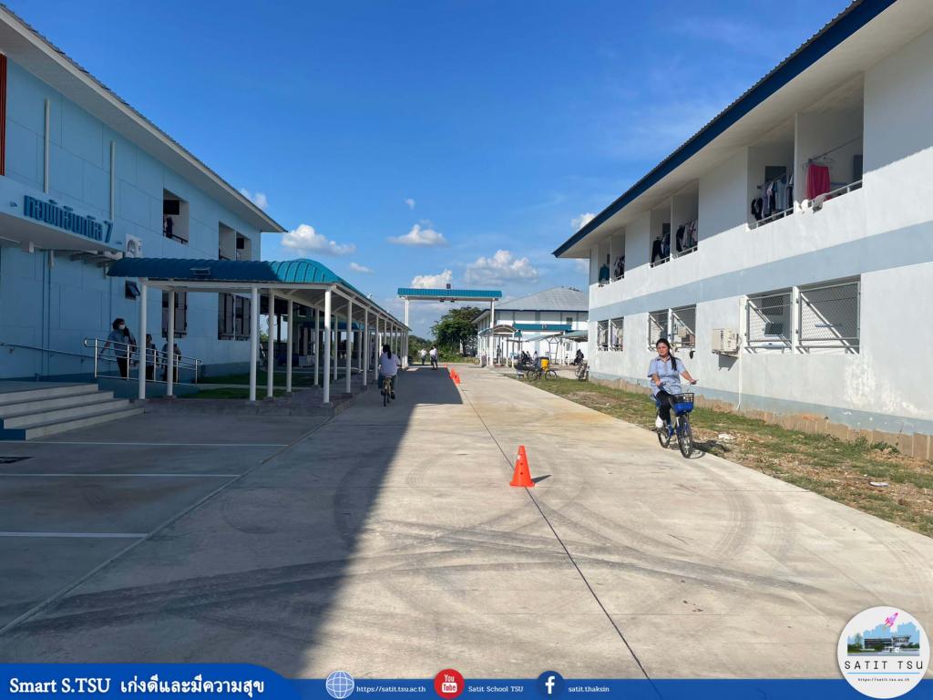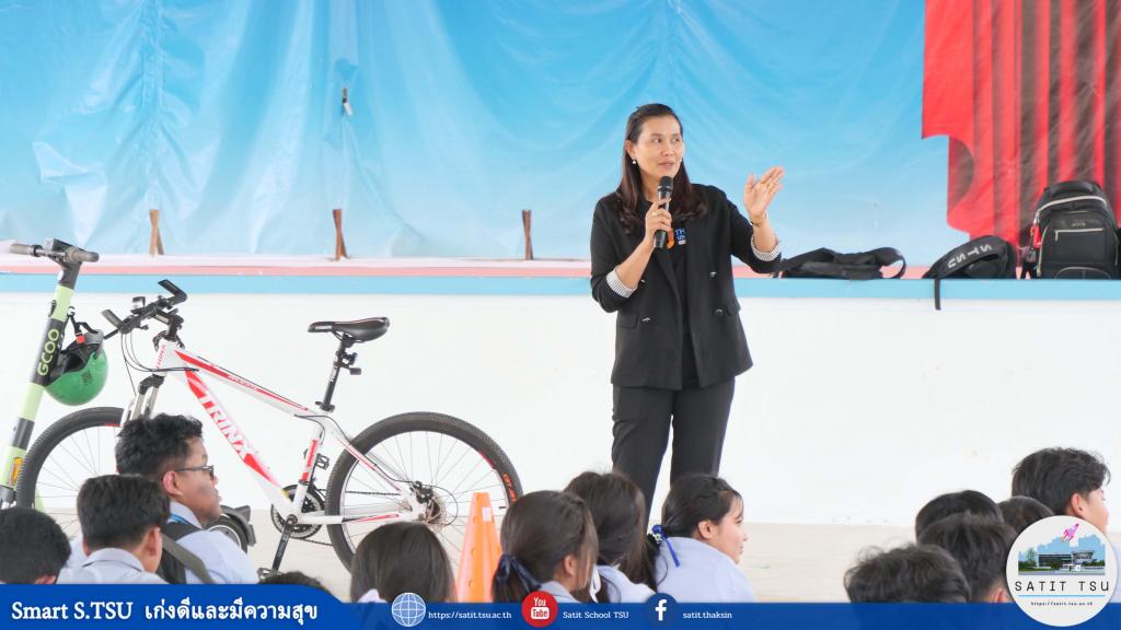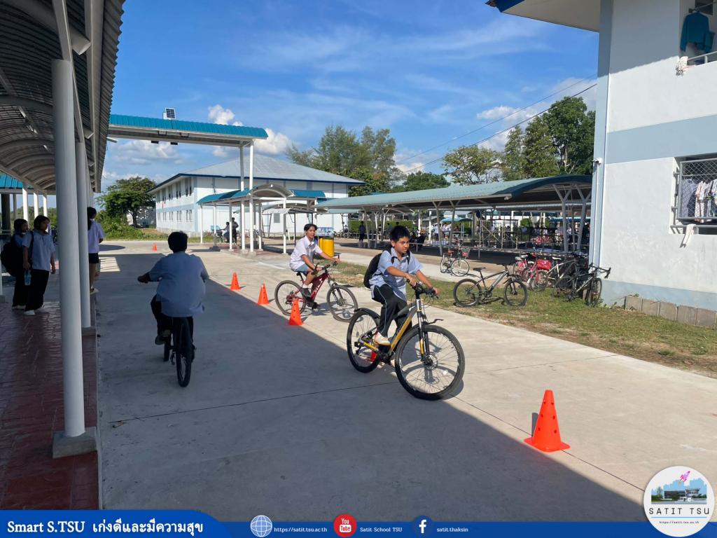 วันที่ 4-5 กรกฎาคม 2566 โรงเรียนสาธิตมหาวิทยาลัยทักษิณ กำหนดจัดโครงการขับขี่ปลอดภัย ใส่ใจ เพื่อนร่วมทาง (Safe bike Save life) ให้กับนักเรียนชั้นมัธยมศึกษาปีที่ 2 และนักเรียนชั้นมัธยมศึกษาชั้นปีที่ 4 ในเวลา 15.30 – 18.30 น. ณ ลานอเนกประสงค์โรงเรียนสาธิตมหาวิทยาลัยทักษิณ เพื่อให้นักเรียนมีความรู้ มีทักษะการปั่นจักรยานและสกู๊ตเตอร์อย่างปลอดภัย สามารถดูแล ตรวจสอบจักรยานเบื้องต้น เพื่อความปลอดภัยในการใช้งาน ซึ่งช่วยลดความเสี่ยงการเกิดอุบัติเหตุและเพื่อให้นักเรียนมีความรู้เกี่ยวกับการปฐมพยาบาลเบื้องต้น กรณีเกิดอุบัติเหตุ โดยมีคุณสมบูรณ์ จุลสุรางค์ นักวิชาการ ฝ่ายกิจการนิสิตและพันธกิจสัมพันธ์ มหาวิทยาลัยทักษิณ ได้ให้เกียรติมาเป็นวิทยากรการอบรมในครั้งนี้ และนายรพีภัทร สุทธินนท์ ฝ่ายบริหารวิทยาเขตพัทลุง มาให้ความรู้ช่องทางการติดต่อเมื่อเกิดอุบัติเหตุภายในโรงเรียนและมหาวิทยาลัย และในวันที่ 2 ได้มีการให้นักเรียนสอบเพื่อขอใบอนุญาตจักรยานทั้งข้อเขียนและข้อปฏิบัติ โดย ข้อเขียนจำนวน 15 ข้อ ข้อละ 2 คะแนน นักเรียนต้องได้ 20 คะแนนขึ้นไปถึงจะมีสิทธิสอบปฏิบัติ สอบปฏิบัติ การให้สัญญาณมือ และขับในเส้นทางที่ต้องใช้ความคล่องแคล่วในการปั่นจักรยาน เมื่อนักเรียนสอบผ่านจะได้สติ๊กเกอร์อนุญาตในการขับขี่ติดที่ตัวจักรยาน เพื่อขับขี่ได้อย่างปลอดภัย