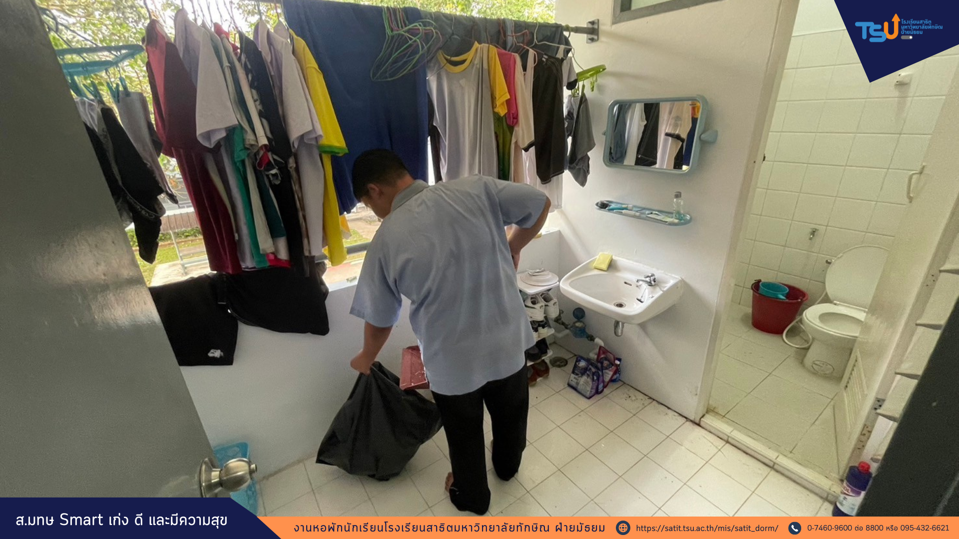 หอพักโรงเรียนสาธิตมหาวิทยาลัยทักษิณ ฝ่ายมัธยม จัดโครงการสาธิต 5 ส. หอพักน่าอยู่ ประจำเดือนกุมภาพันธ์ 2567 ณ หอพักนักเรียนโรงเรียนสาธิตมหาวิทยาลัยทักษิณ ฝ่ายมัธยม