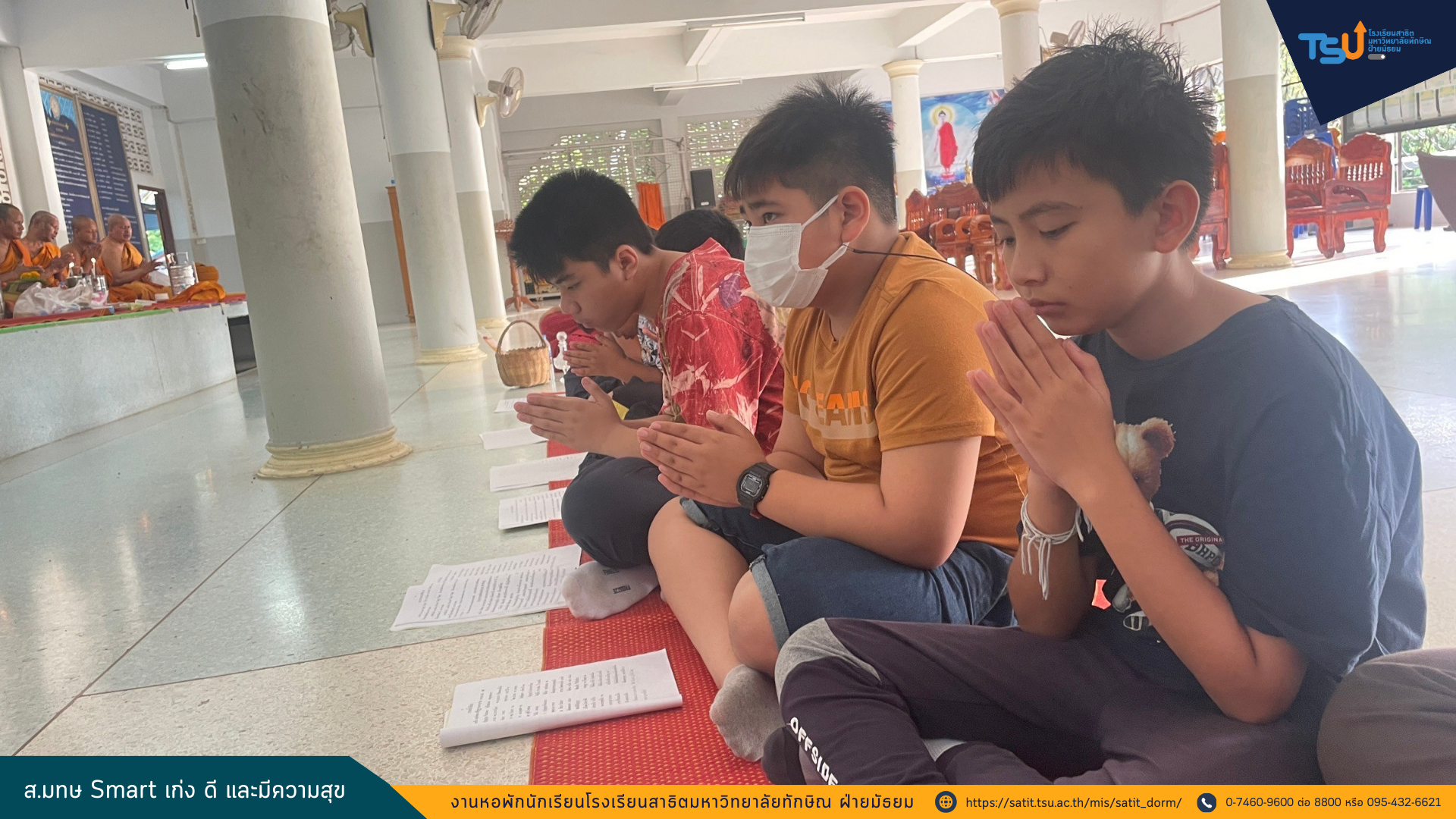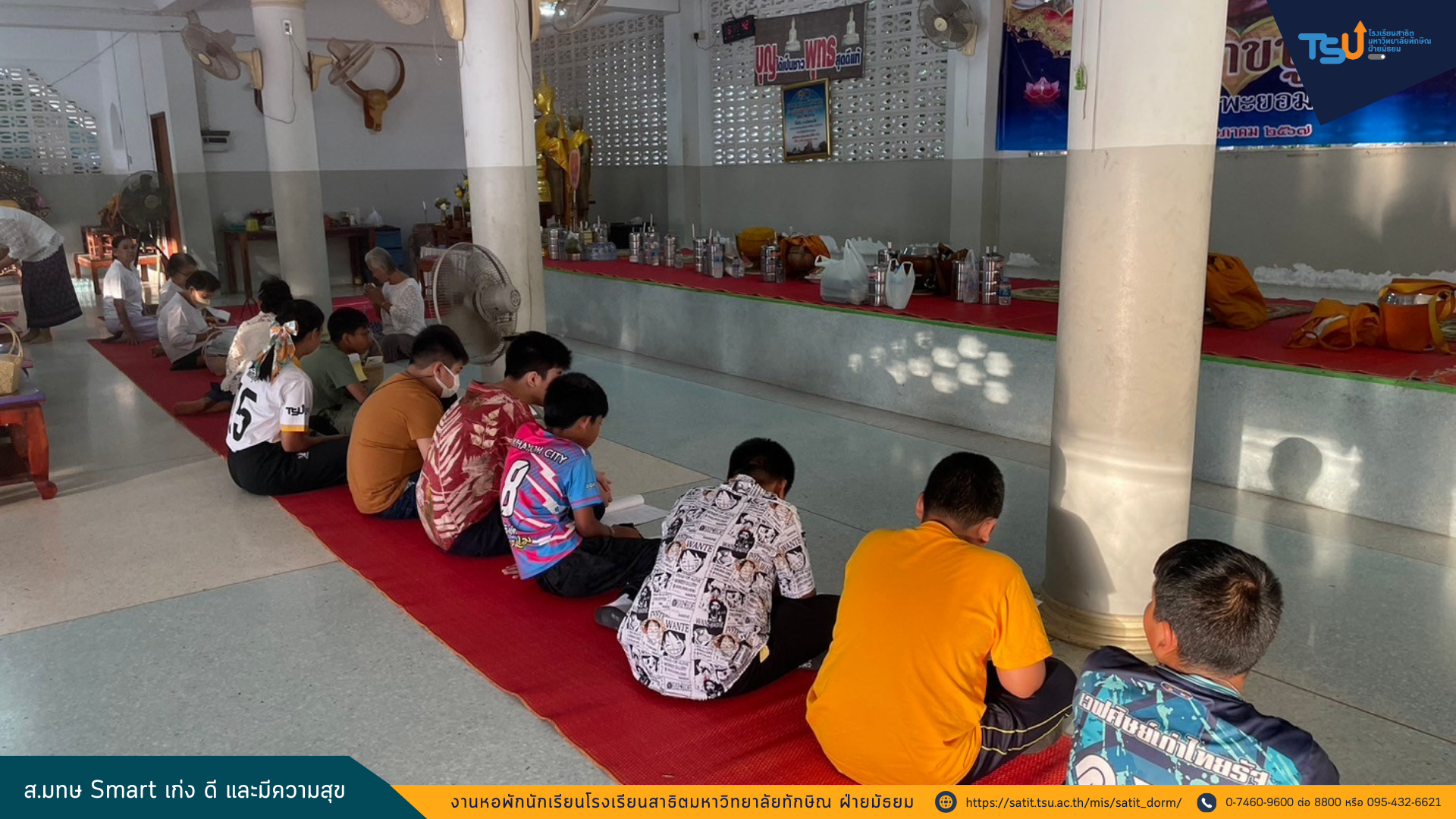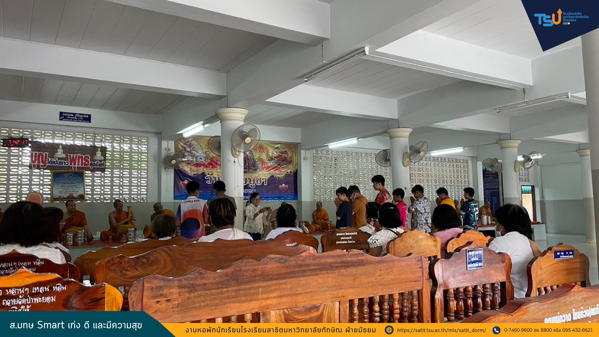 นักเรียนประจำหอพักโรงเรียนสาธิตมหาวิทยาลัยทักษิณ เข้าร่วมโครงการสาธิต (ธรรม) ดี อิ่มบุญ ประจำเดือนสิงหาคม เพื่ออนุรักษ์และสืบสานขนบธรรมเนียมประเพณีอันดีงามของไทยและเพื่อเป็นหลักยึดเหนี่ยวจิตใจ กล่อมเกลาให้อยู่ในศีลธรรมอันดีงาม ทั้งนี้กิจกรรมดังกล่าวเป็นกิจกรรมที่จัดขึ้นเดือนละ 2 ครั้ง ณ วัดป่าพะยอม เวลา 06.30 – 08.00 น. ระหว่างวันที่ 30 พฤษภาคม – 17 กันยายน 2567