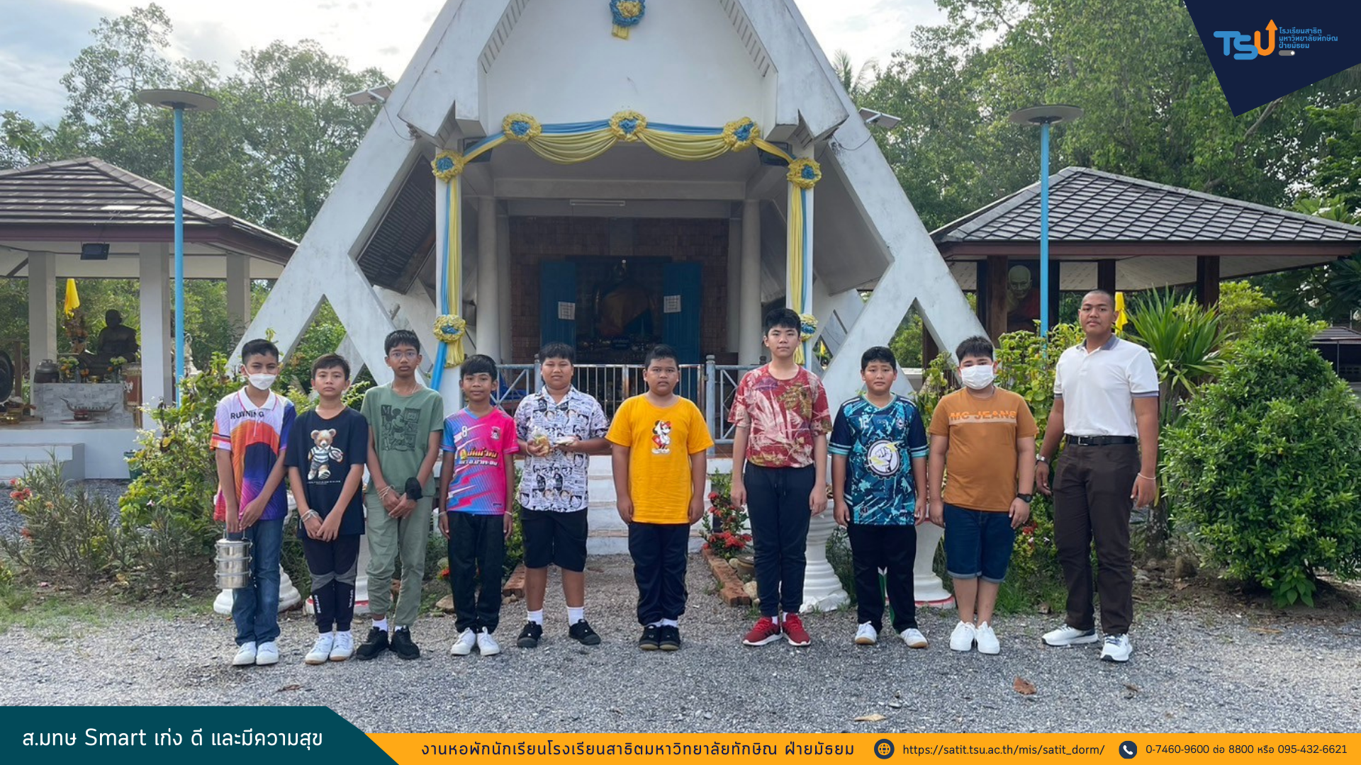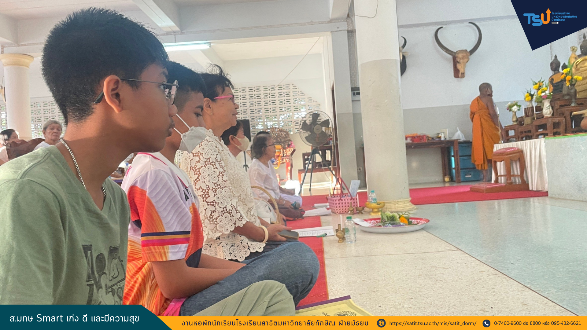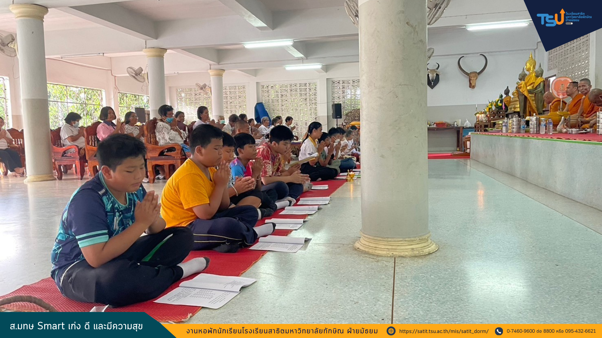 นักเรียนประจำหอพักโรงเรียนสาธิตมหาวิทยาลัยทักษิณ เข้าร่วมโครงการสาธิต (ธรรม) ดี อิ่มบุญ ประจำเดือนสิงหาคม เพื่ออนุรักษ์และสืบสานขนบธรรมเนียมประเพณีอันดีงามของไทยและเพื่อเป็นหลักยึดเหนี่ยวจิตใจ กล่อมเกลาให้อยู่ในศีลธรรมอันดีงาม ทั้งนี้กิจกรรมดังกล่าวเป็นกิจกรรมที่จัดขึ้นเดือนละ 2 ครั้ง ณ วัดป่าพะยอม เวลา 06.30 – 08.00 น. ระหว่างวันที่ 30 พฤษภาคม – 17 กันยายน 2567
