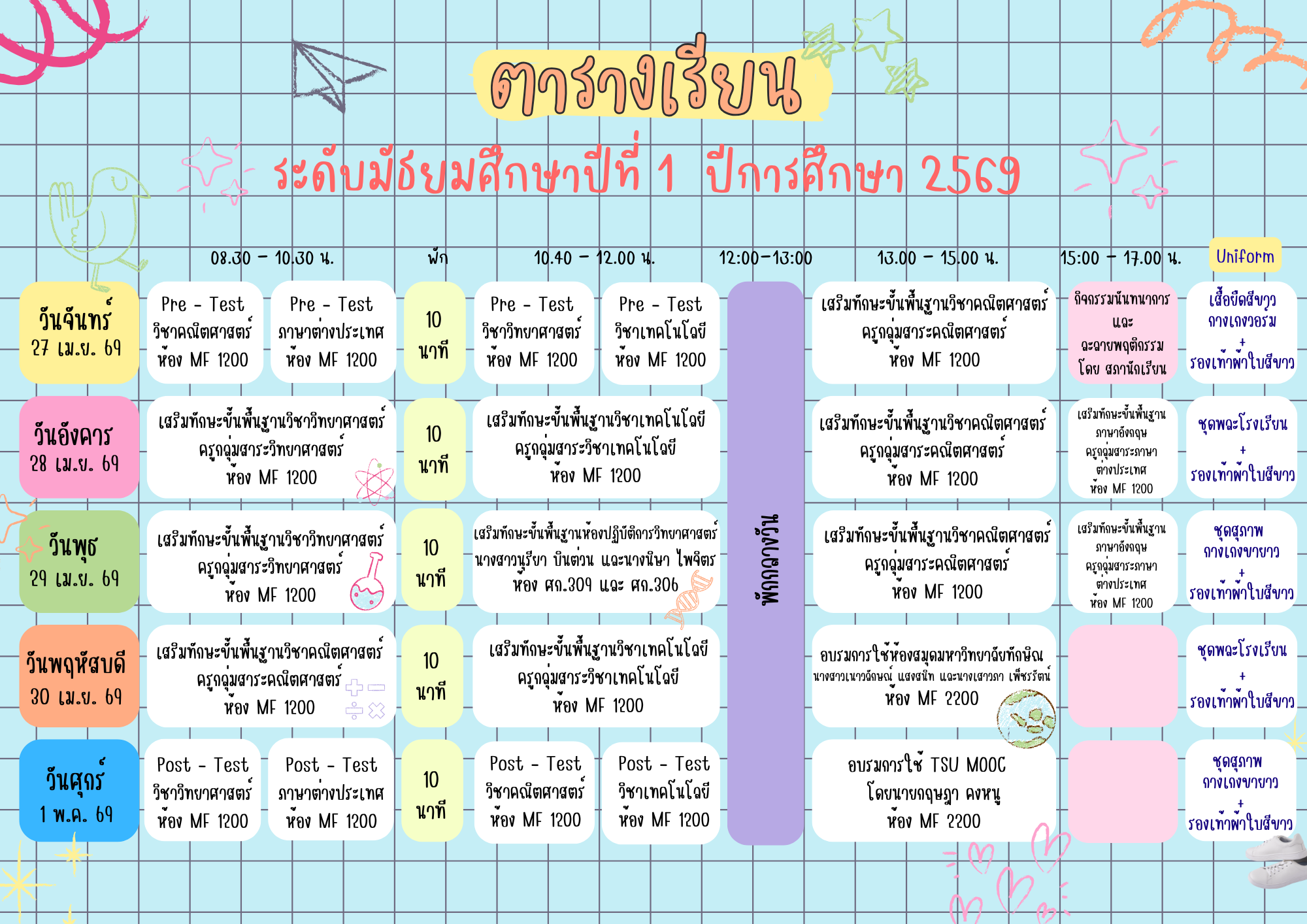 หมายเหตุ : สำหรับเสื้อยืดสีขาวของโรงเรียน ทางโรงเรียนจะแจกให้ในวันปฐมนิเทศ ใช้สำหรับนักเรียนที่ยังไม่ได้ชุดพละ และชุดนักเรียน