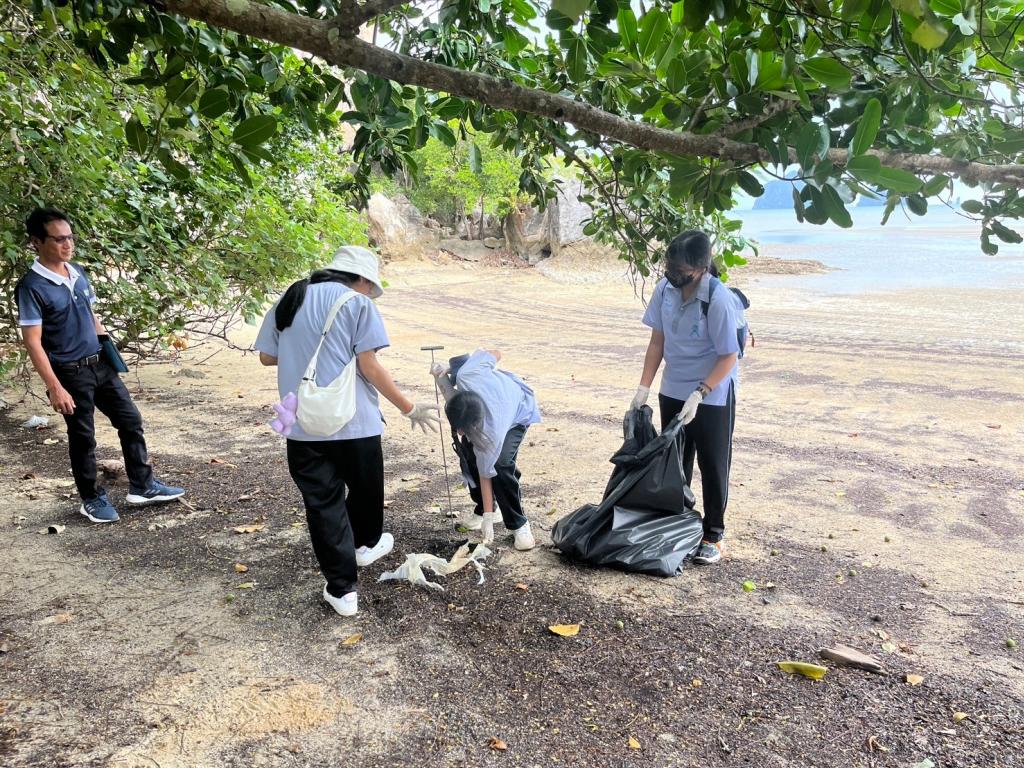 กิจกรรมที่ 2 โลกสวยด้วยมือเรา นักเรียนได้เรียนรู้สาเหตุการเกิดของประเภทขยะทะเลและผลกระทบ พร้อมลงมือ ปฏิบัติในการเก็บขยะบริเวณชายหาดวิวาห์ และแยกประเภทขยะทะเล