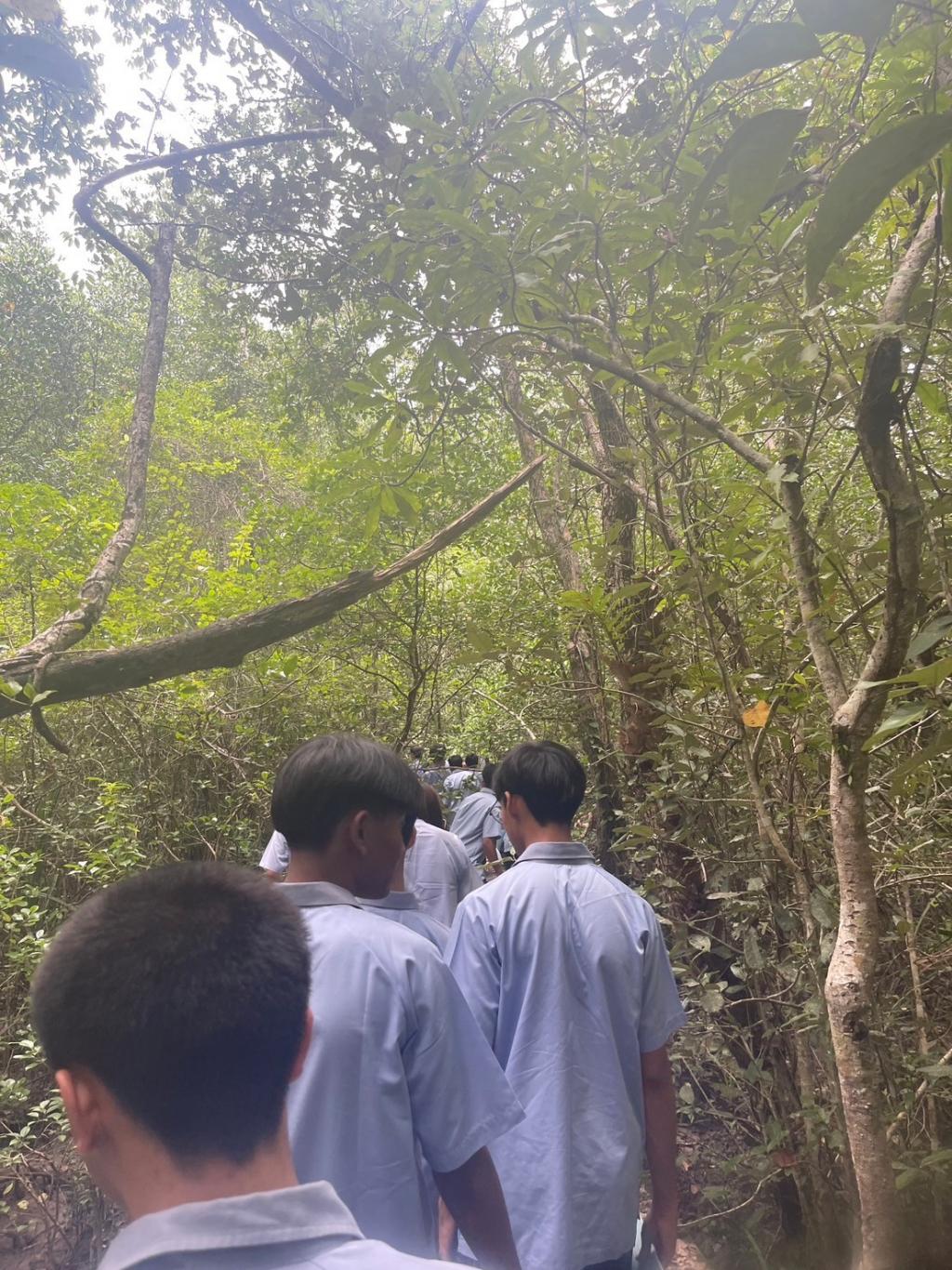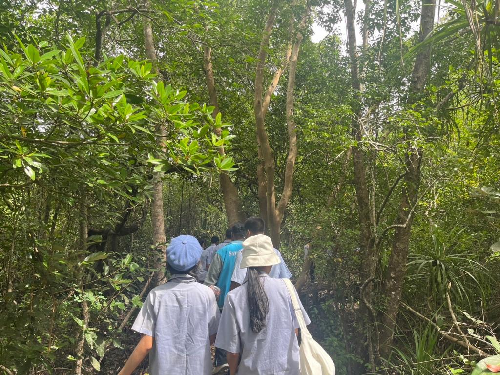 กิจกรรมที่ 1 ลักษณะสิ่งแวดล้อม ป่าบก ป่าชายเลนและป่าชายหาด นักเรียนได้ฟังบรรยายลักษณะป่าทั้ง 3 ชนิด และพืชพรรณธรรมชาติ ระบบนิเวศ และสัตว์ชนิดต่าง ๆ นอกจากนั้น เด็ก ๆ ได้เดินสำรวจเส้นทางศึกษาธรรมชาติ ณ ศูนย์วิจัยราชมงคล