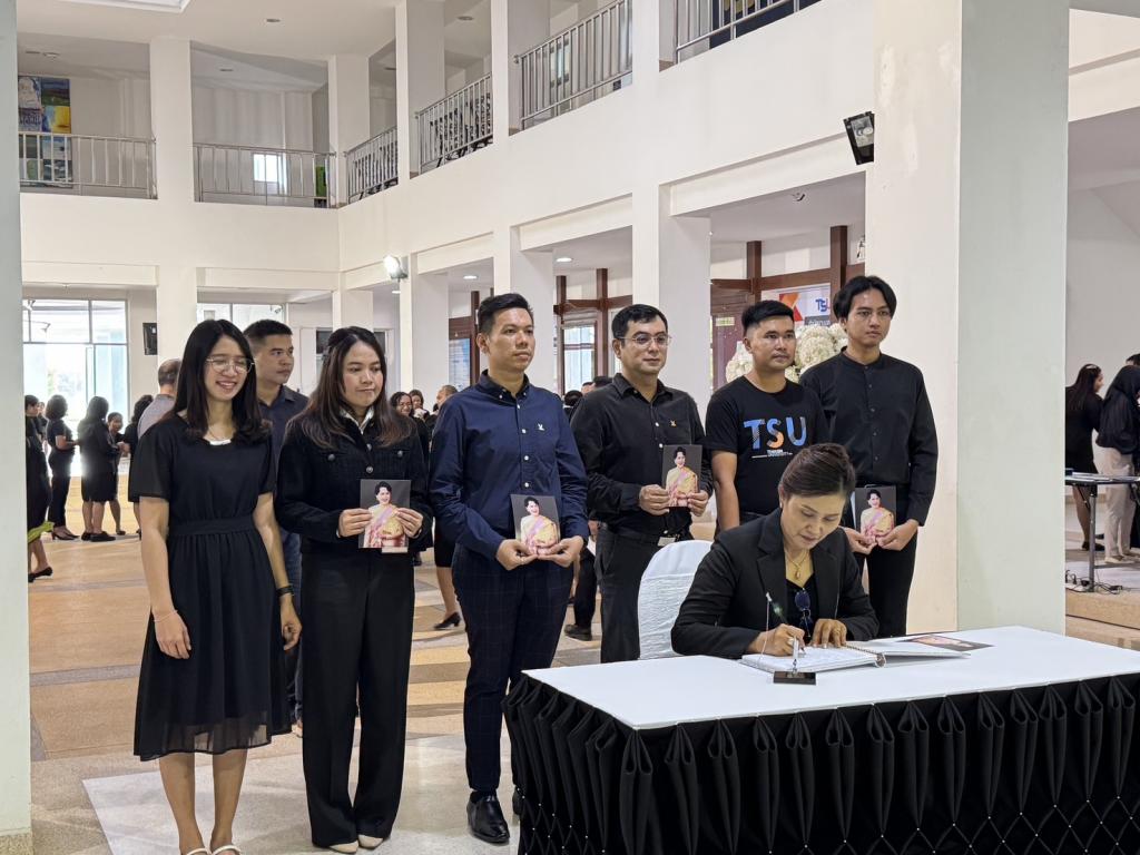 วันที่ 29 ตุลาคม 2568 ผู้บริหารและบุคลากรโรงเรียนสาธิตมหาวิทยาลัยทักษิณ (ฝ่ายมัธยม) เข้าร่วมพิธีน้อมถวายความอาลัยและสำนึกในพระมหากรุณาธิคุณ ณ มหาวิทยาลัยทักษิณ วิทยาเขตพัทลุง บริเวณโถงชั้น 1 อาคารบริหารและสำนักงานกลาง ภายในพิธีมีการกล่าวถ้อยคำแสดงความอาลัยโดยอธิการบดี (หรือผู้แทน) พร้อมด้วยผู้บริหาร บุคลากร และผู้เข้าร่วมพิธีทุกท่าน ได้ร่วมยืนสงบนิ่งถวายความอาลัยเป็นเวลา 93 วินาที เพื่อน้อมรำลึกในพระมหากรุณาธิคุณอันหาที่สุดมิได้ ทุกดวงใจชาวสาธิตมหาวิทยาลัยทักษิณฝ่ายมัธยม ขอน้อมรำลึกในพระมหากรุณาธิคุณ สมเด็จพระนางเจ้าสิริกิติ์ พระบรมราชชนนีพันปีหลวง อย่างหาที่สุดมิได้ ด้วยความจงรักภักดี