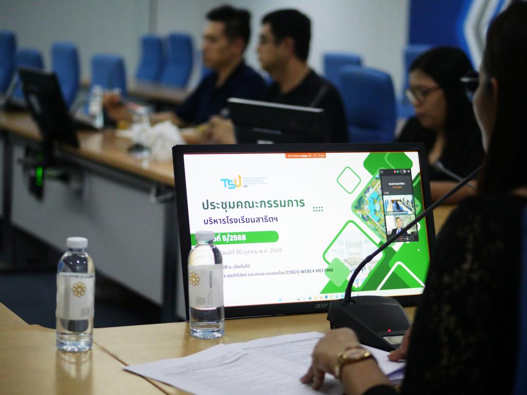 เมื่อวันพฤหัสบดีที่ 30 ตุลาคม 2568โรงเรียนสาธิตมหาวิทยาลัยทักษิณ (ฝ่ายมัธยม)จัดประชุม คณะกรรมการบริหารโรงเรียนสาธิตมหาวิทยาลัยทักษิณ ฝ่ายมัธยม ครั้งที่ 5/2568 โดยมี ผู้ช่วยศาสตราจารย์ ดร.สุนิสา คงประสิทธิ์ ผู้อำนวยการโรงเรียน เป็นประธานการประชุมในการประชุมครั้งนี้ มีวาระสำคัญร่วมพิจารณาเพื่อกำกับดูแลการจัดการศึกษา กำหนดนโยบาย และขับเคลื่อนการบริหารงานของโรงเรียน ให้บรรลุตามวัตถุประสงค์และแนวทางการพัฒนาอย่างมีประสิทธิภาพการประชุมจัดขึ้น ณ ห้องประชุมปาริฉัตร ชั้น 2 อาคารบริหารและสำนักงานกลาง มหาวิทยาลัยทักษิณ วิทยาเขตพัทลุง
