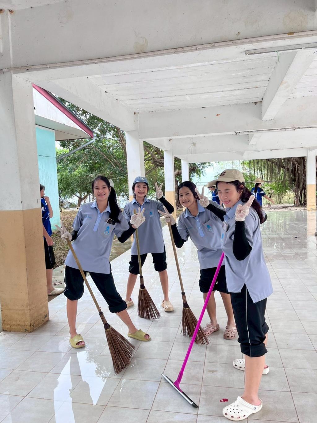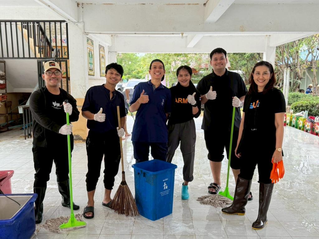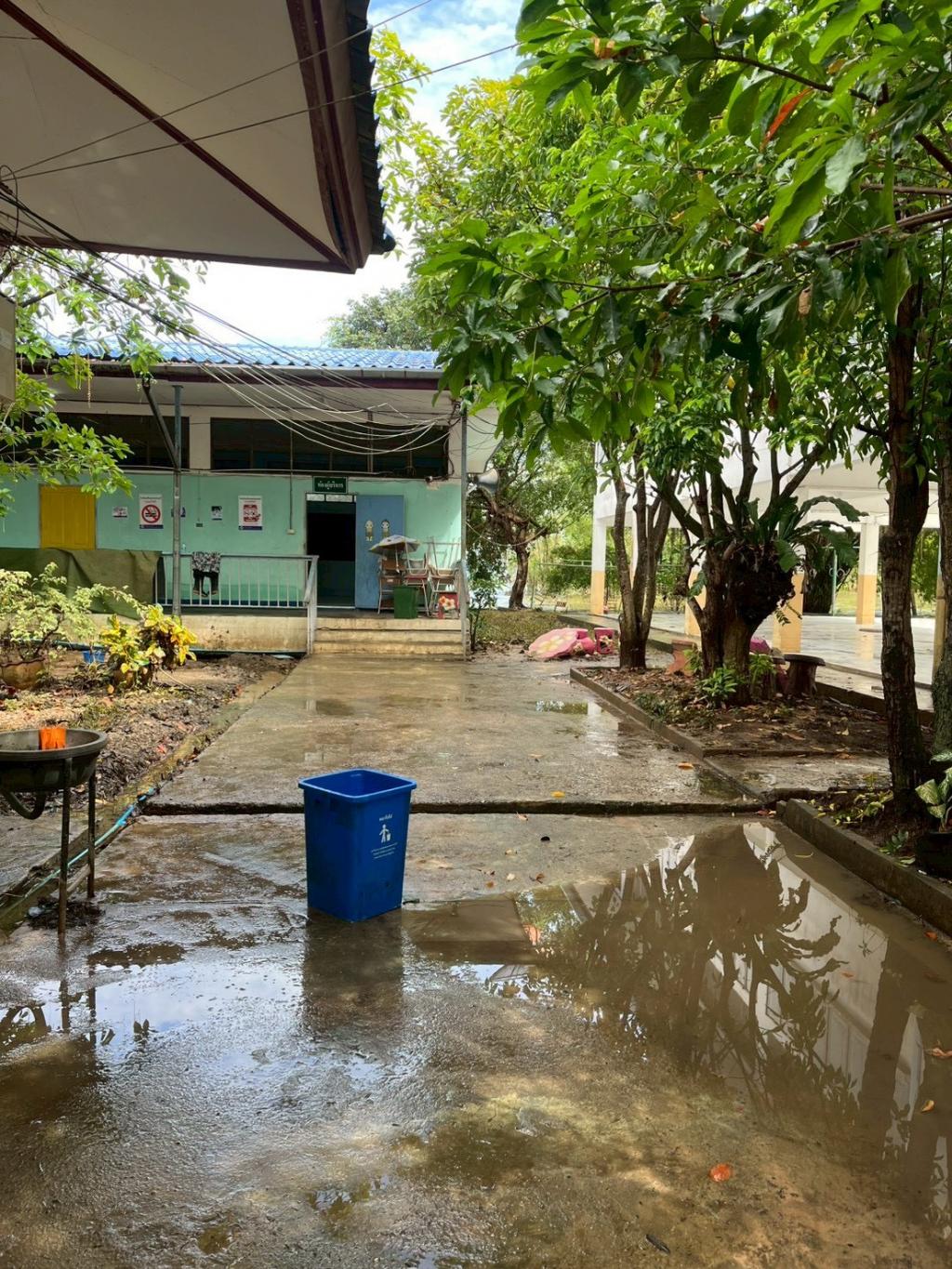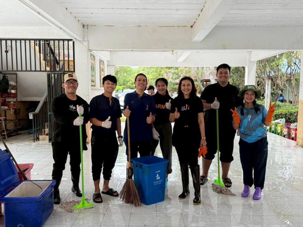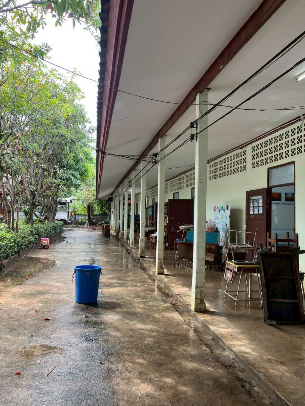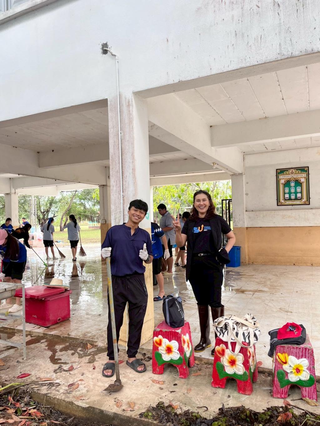 • ทำความสะอาดอาคารเรียน โต๊ะ เก้าอี้ และบริเวณโดยรอบหลังน้ำลด