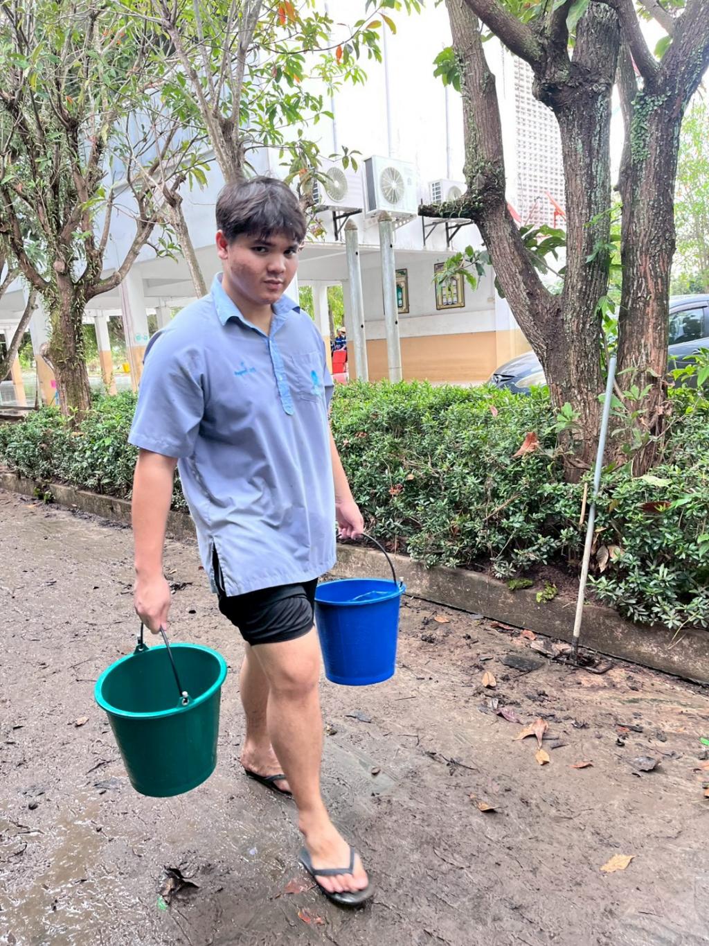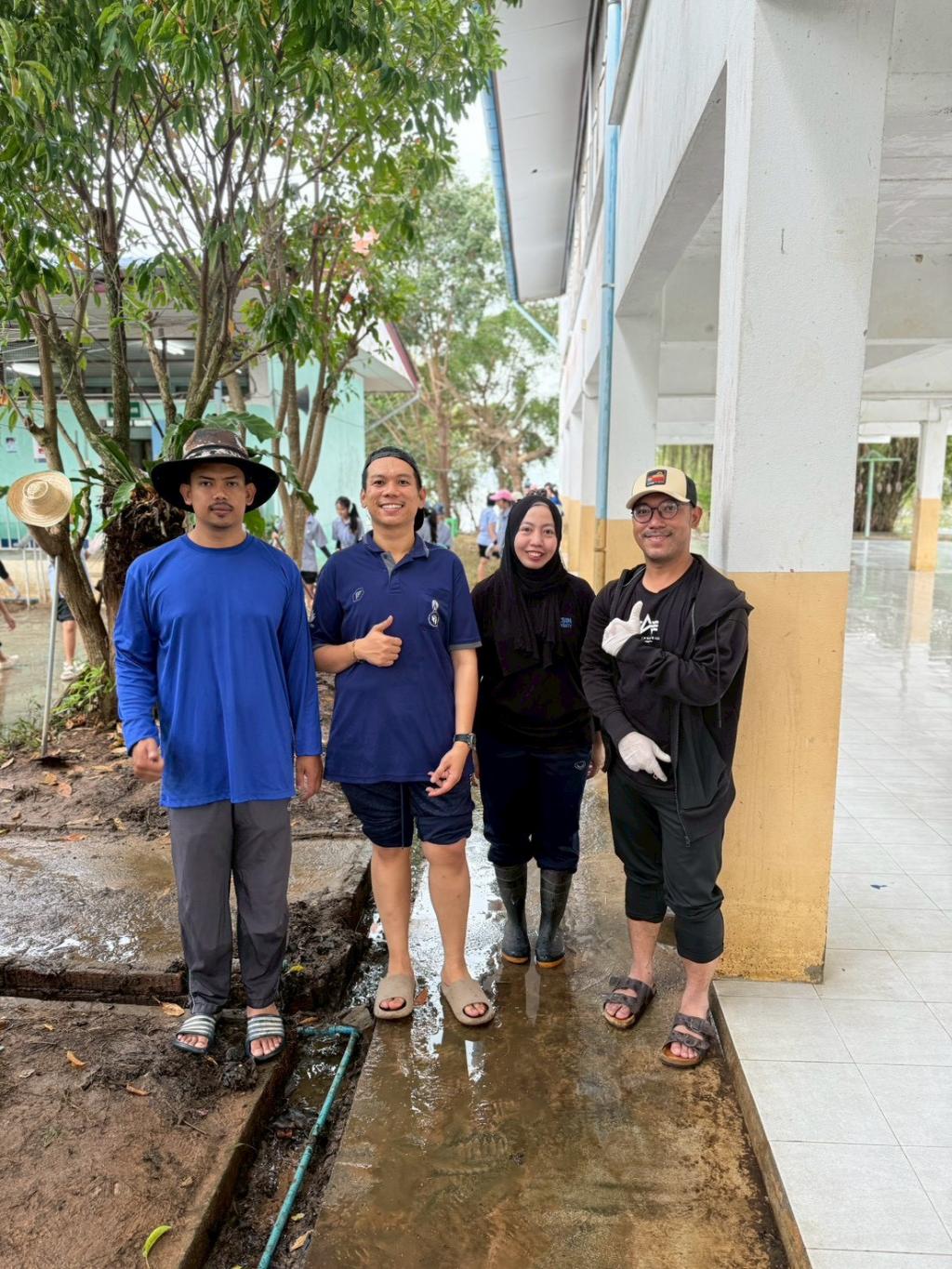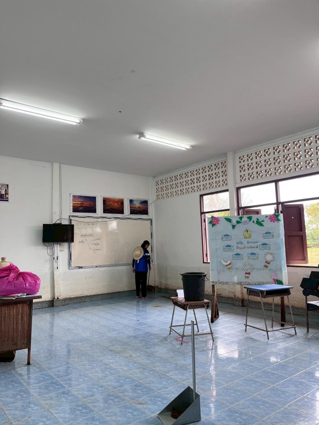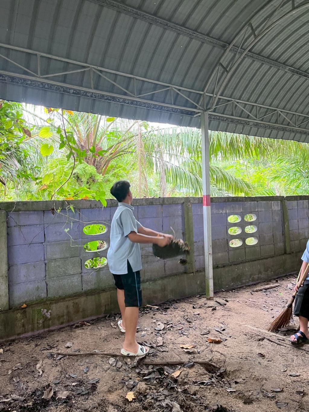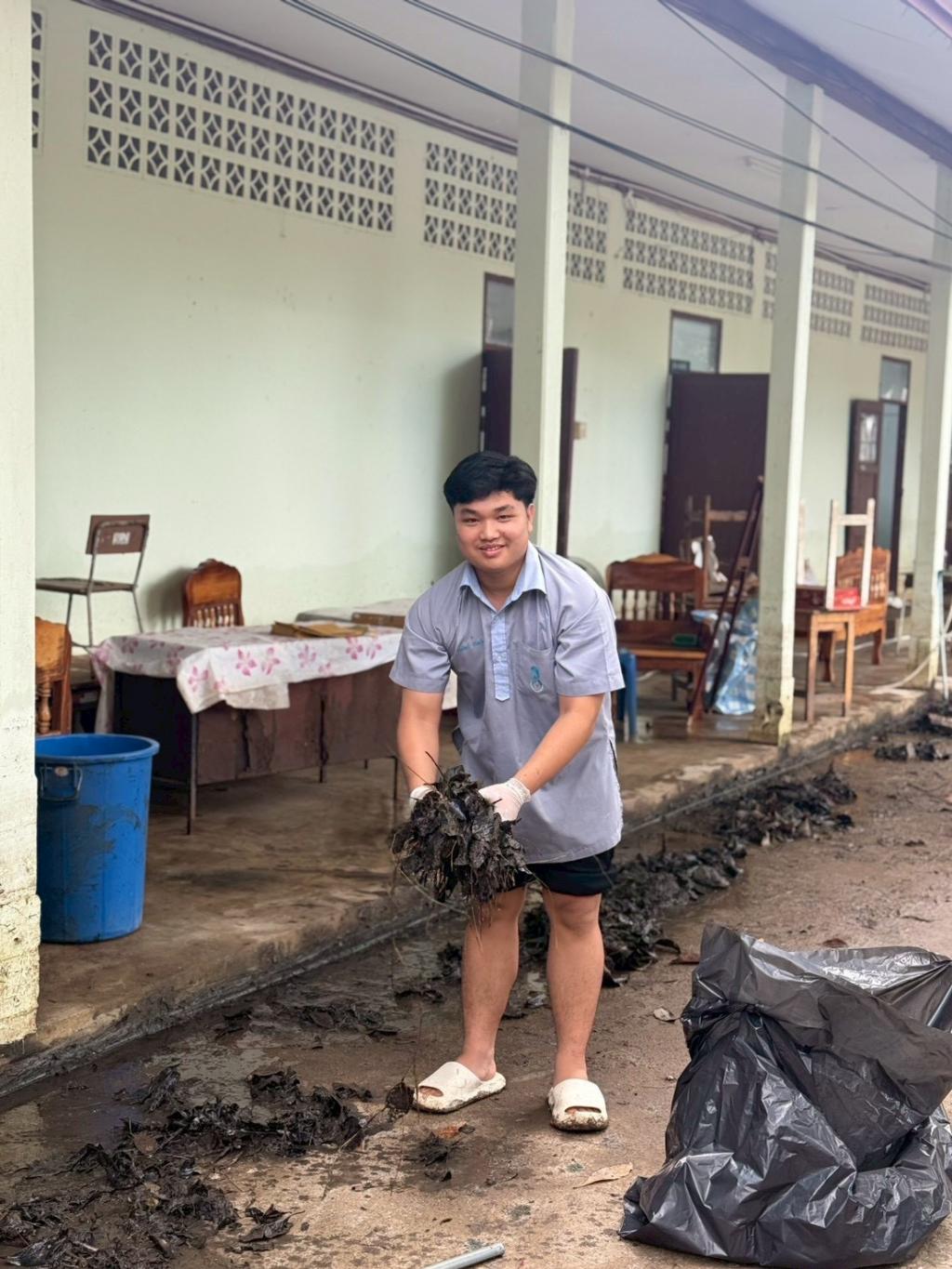 • ทำความสะอาดอาคารเรียน โต๊ะ เก้าอี้ และบริเวณโดยรอบหลังน้ำลด