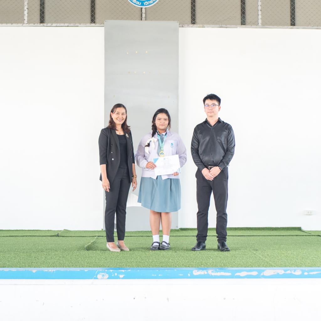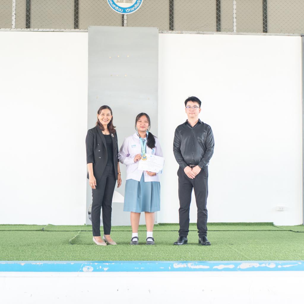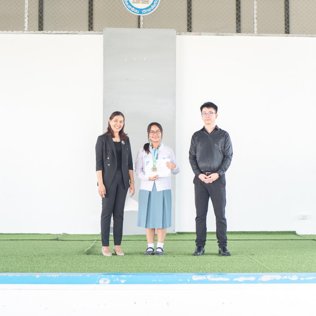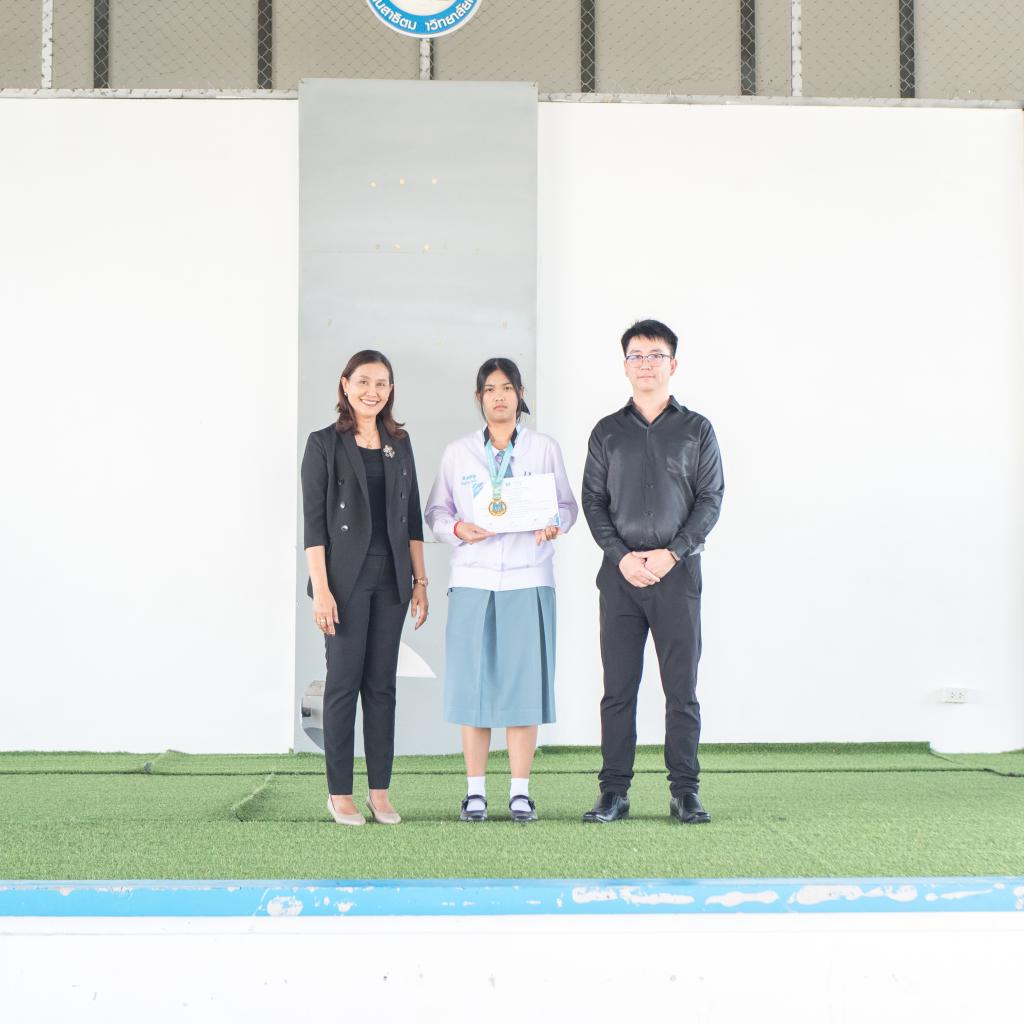 ได้รับเกียรติจาก ผู้ช่วยศาสตราจารย์ ดร.สุนิสา คงประสิทธิ์ ผู้อำนวยการโรงเรียน เป็นประธานในพิธีมอบเหรียญรางวัลและเกียรติบัตรแก่นักเรียนที่เข้าร่วมโครงการและการแข่งขันทางวิชาการ