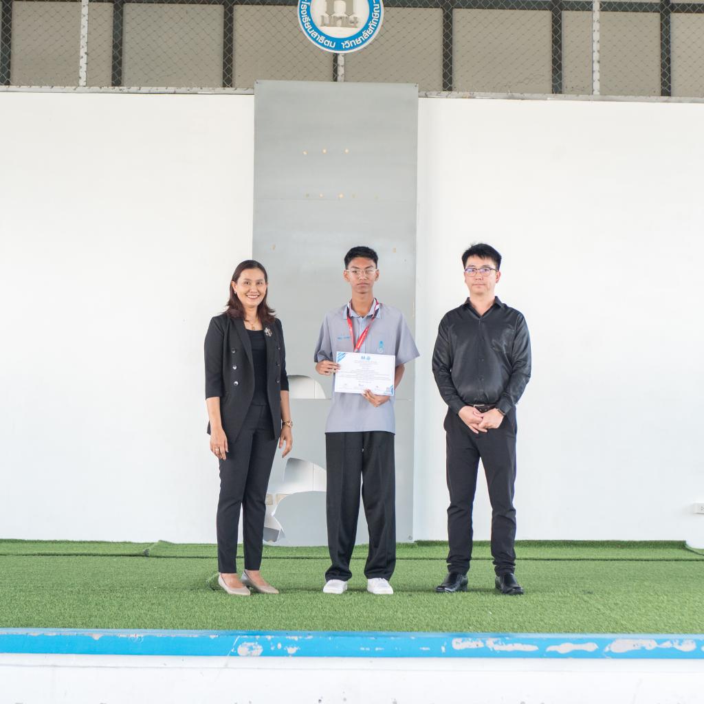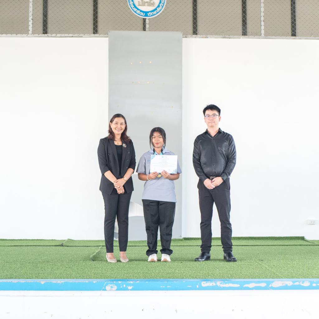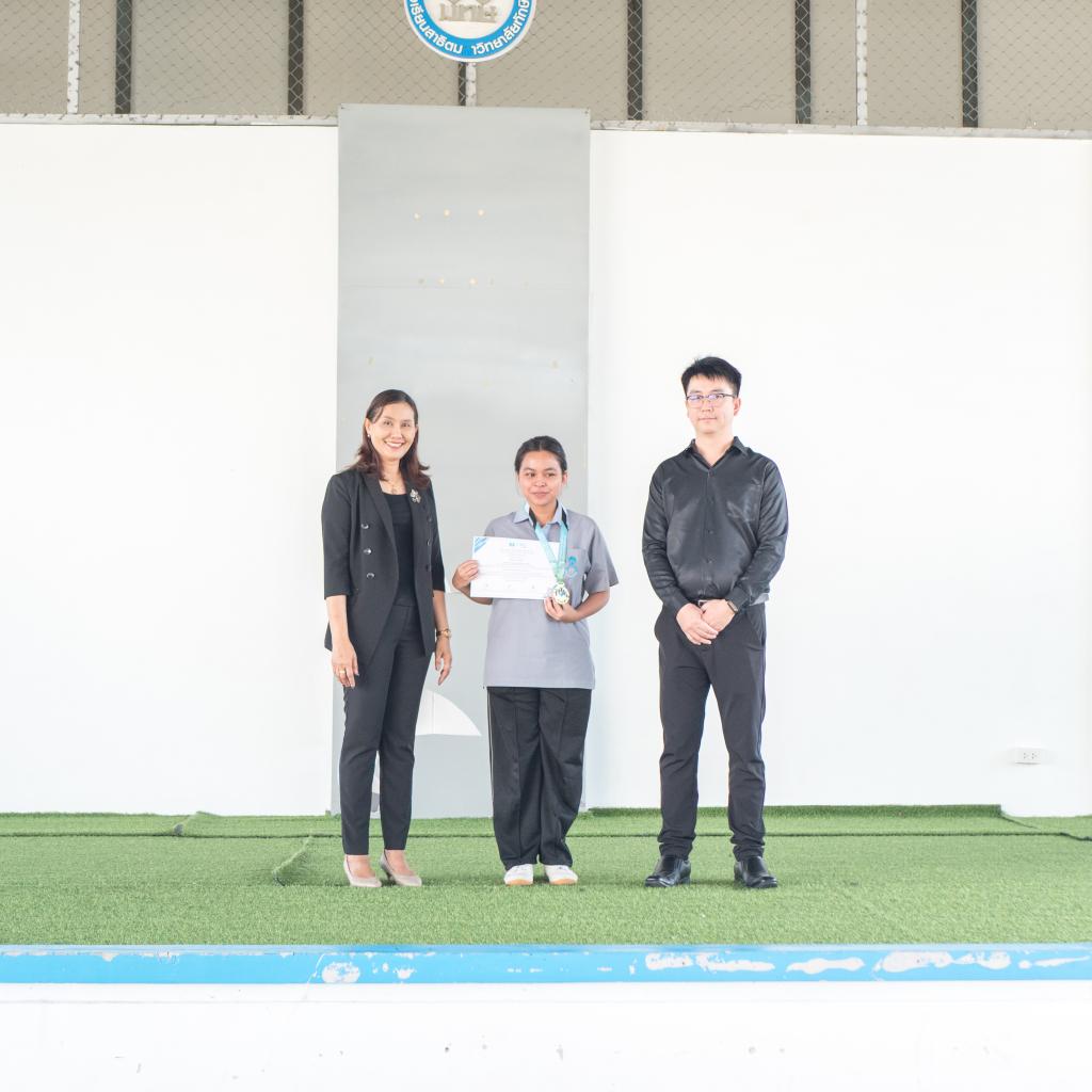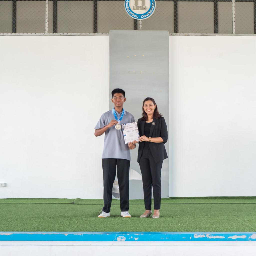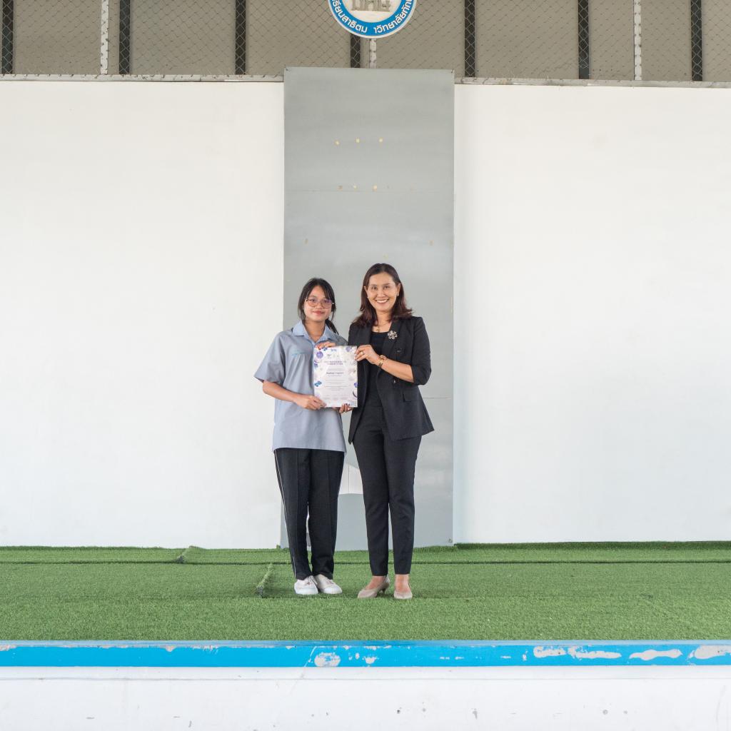 ได้รับเกียรติจาก ผู้ช่วยศาสตราจารย์ ดร.สุนิสา คงประสิทธิ์ ผู้อำนวยการโรงเรียน เป็นประธานในพิธีมอบเหรียญรางวัลและเกียรติบัตรแก่นักเรียนที่เข้าร่วมโครงการและการแข่งขันทางวิชาการ