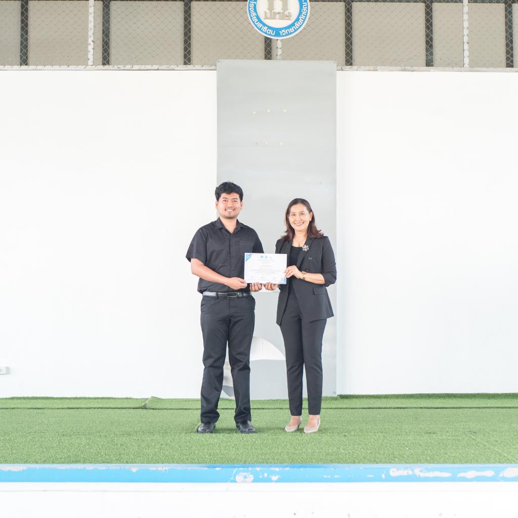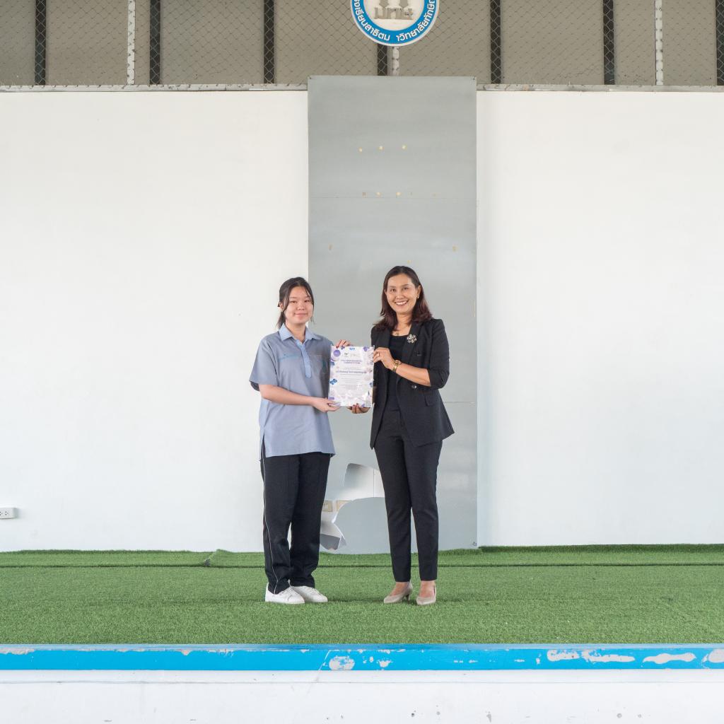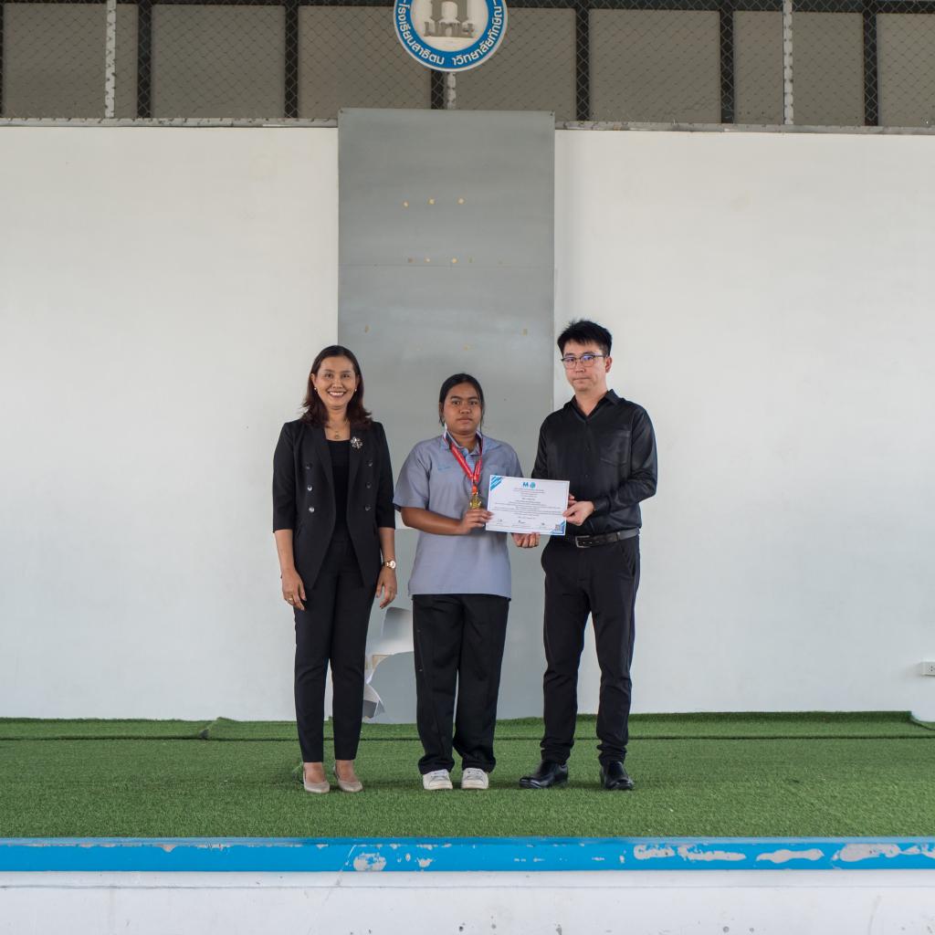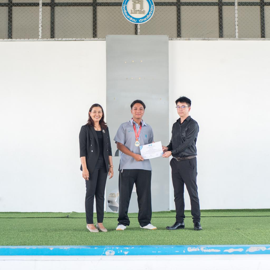 ได้รับเกียรติจาก ผู้ช่วยศาสตราจารย์ ดร.สุนิสา คงประสิทธิ์ ผู้อำนวยการโรงเรียน เป็นประธานในพิธีมอบเหรียญรางวัลและเกียรติบัตรแก่นักเรียนที่เข้าร่วมโครงการและการแข่งขันทางวิชาการ