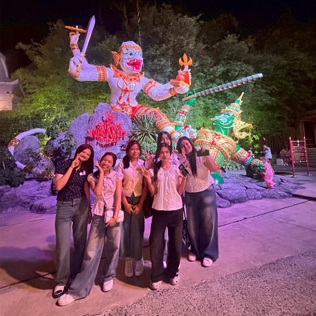 ในวันที่ 8 ธันวาคม 2568 นักเรียนได้เข้าชม สยามนิรมิต ภูเก็ต (Siam Niramit Phuket) แหล่งเรียนรู้ด้านประวัติศาสตร์และวัฒนธรรมไทยที่นำเสนอเรื่องราวตั้งแต่ประวัติศาสตร์ชาติไทยจนถึงตำนานพื้นบ้าน ผ่านการแสดงที่สะท้อนความหลากหลายของวัฒนธรรมไทยทั้ง 4 ภูมิภาค ซึ่งเป็นสถานที่ท่องเที่ยวเชิงวัฒนธรรมที่ได้รับรางวัลระดับประเทศและมาตรฐานการท่องเที่ยวอย่างยั่งยืน