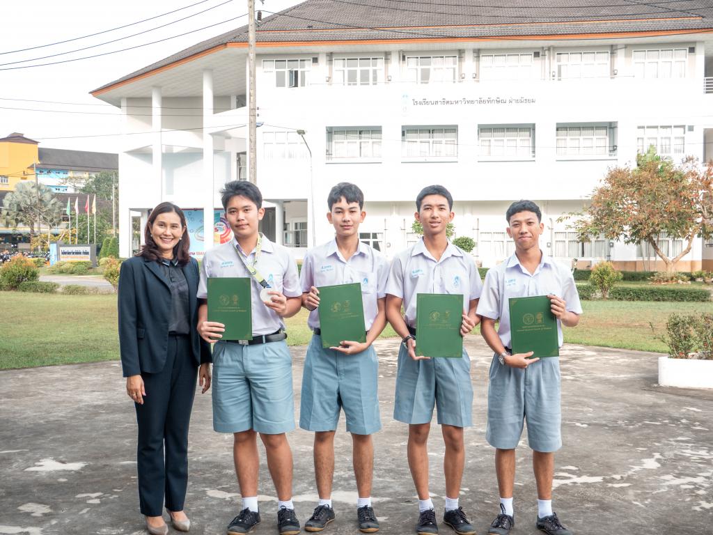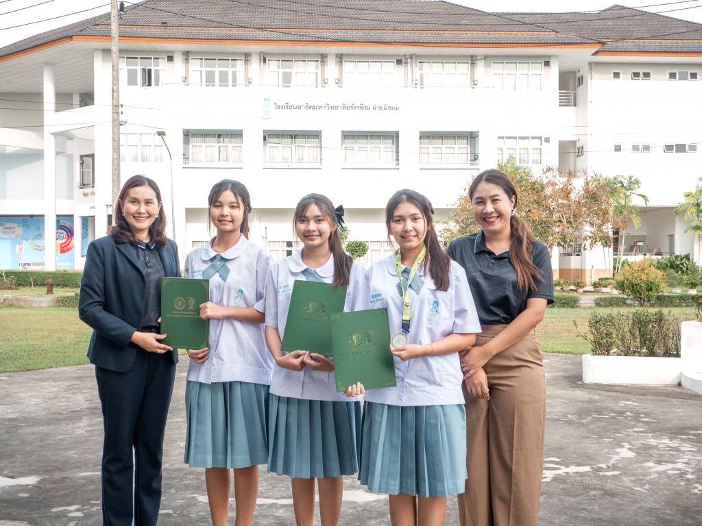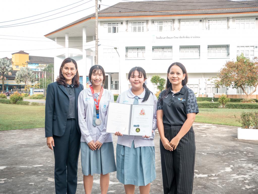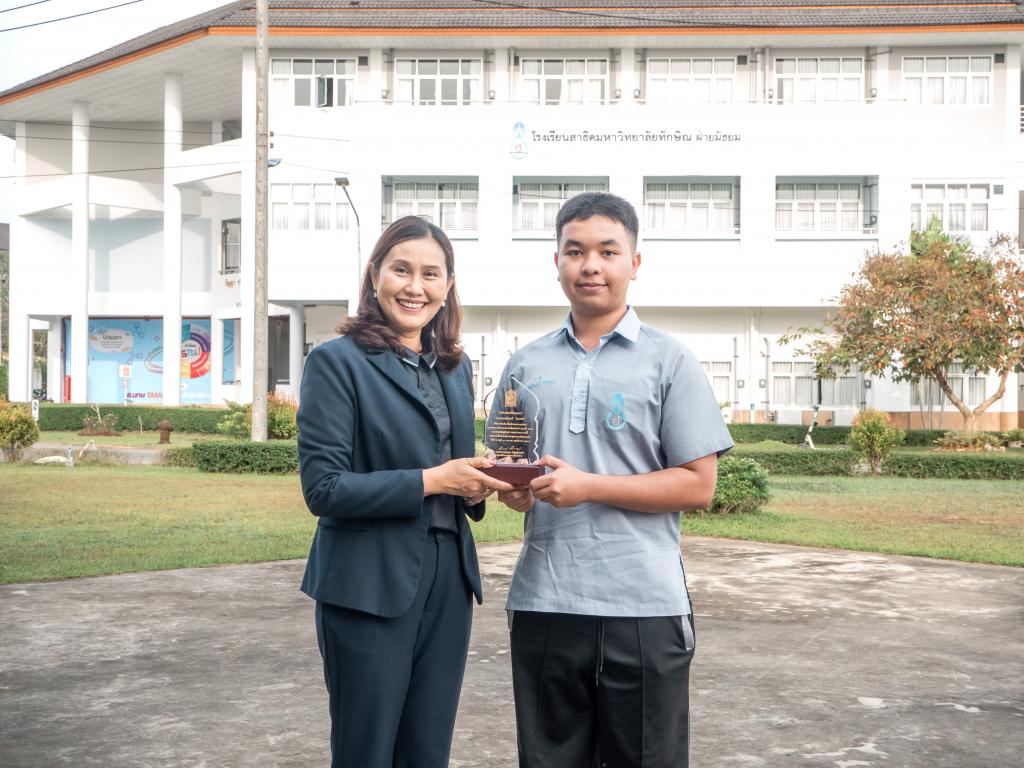 โดยได้รับเกียรติจากผู้ช่วยศาสตราจารย์ ดร.สุนิสา คงประสิทธิ์ ผู้อำนวยการโรงเรียนสาธิตมหาวิทยาลัยทักษิณ ฝ่ายมัธยม เป็นประธานมอบเหรียญรางวัลและเกียรติบัตร
