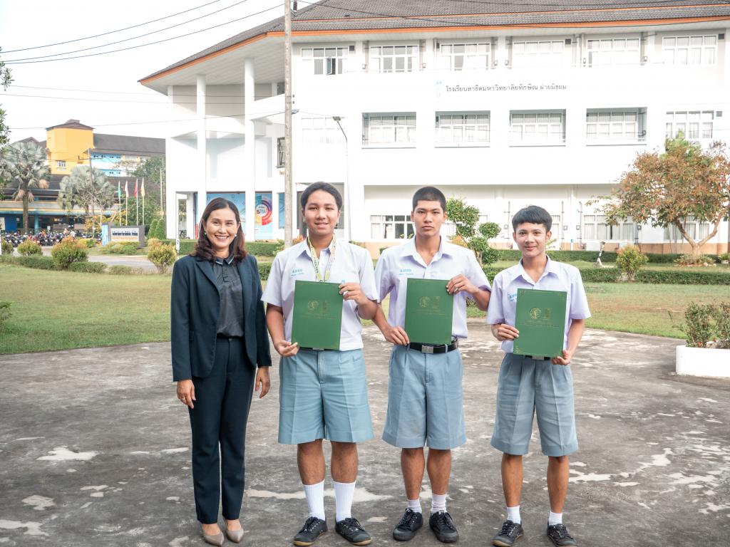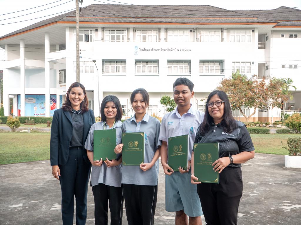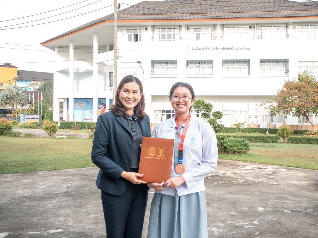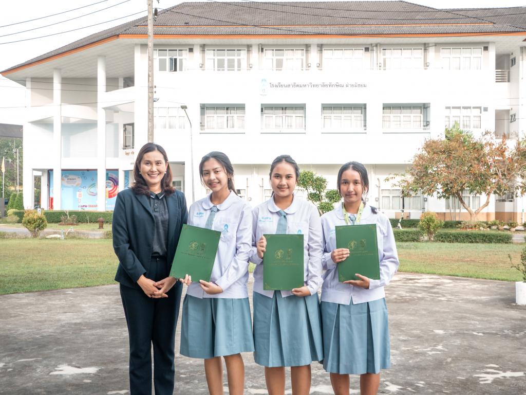 โดยได้รับเกียรติจากผู้ช่วยศาสตราจารย์ ดร.สุนิสา คงประสิทธิ์ ผู้อำนวยการโรงเรียนสาธิตมหาวิทยาลัยทักษิณ ฝ่ายมัธยม เป็นประธานมอบเหรียญรางวัลและเกียรติบัตร
