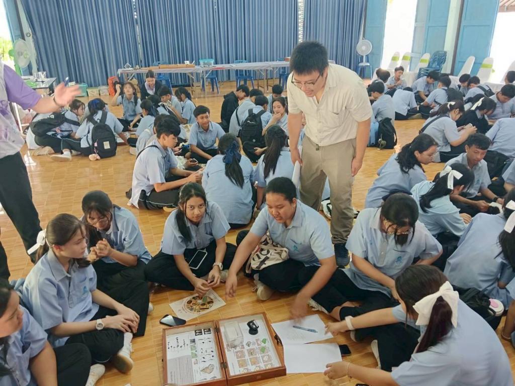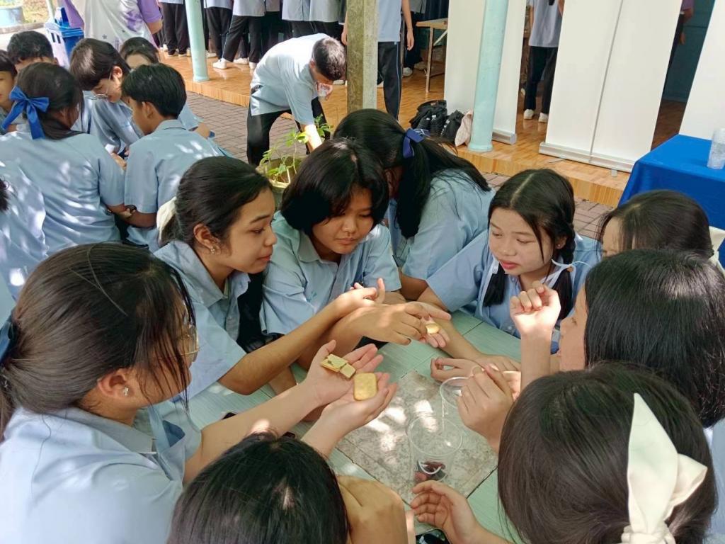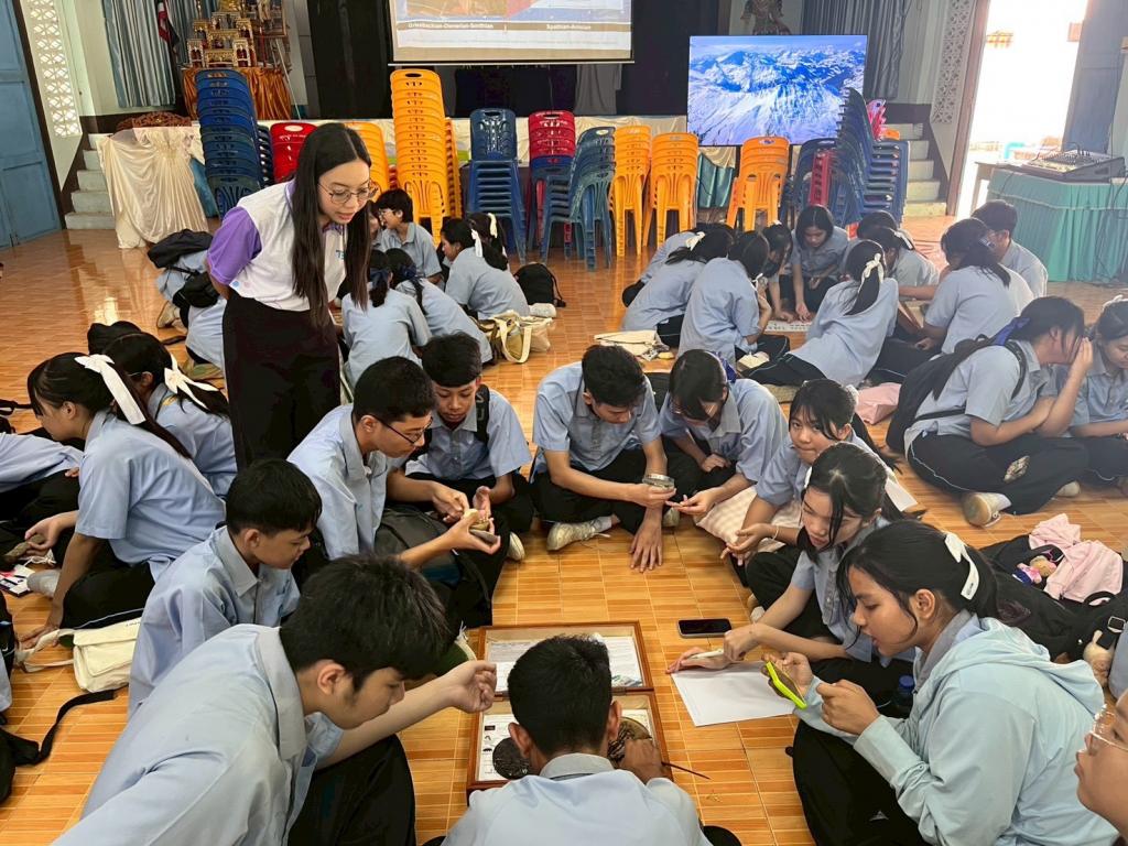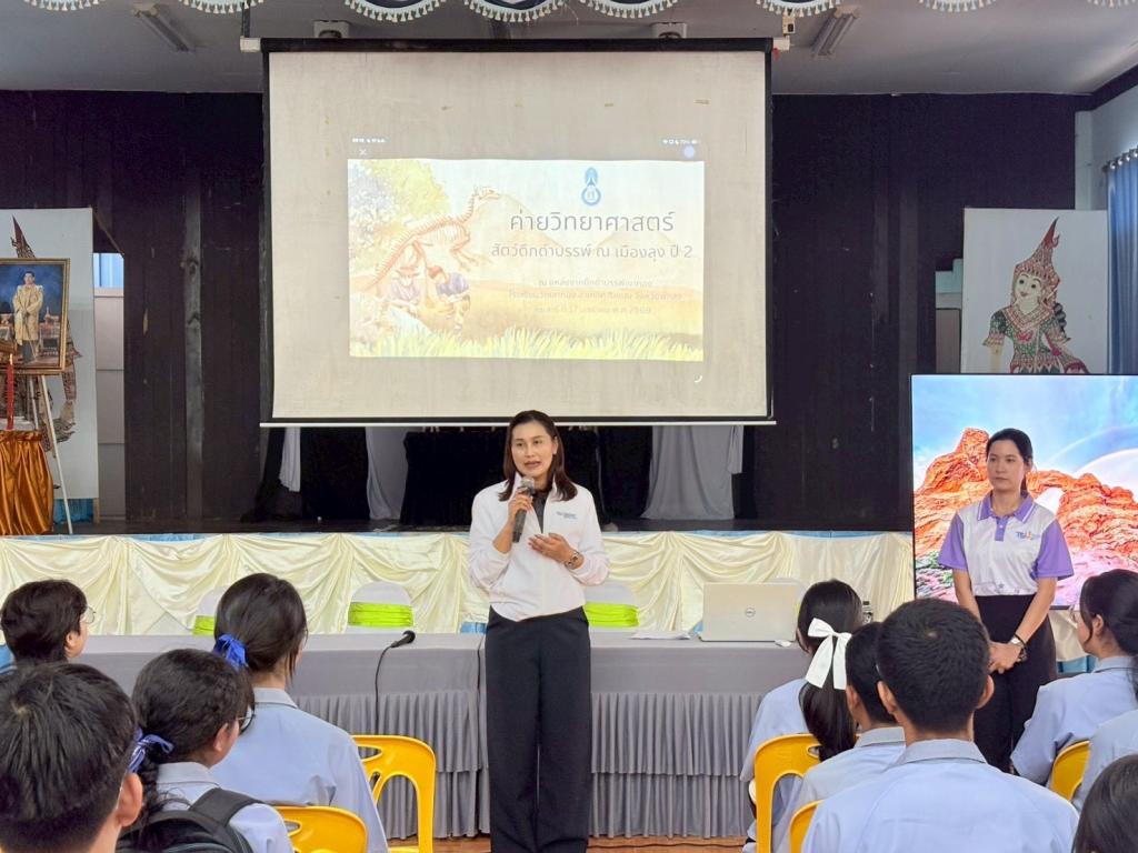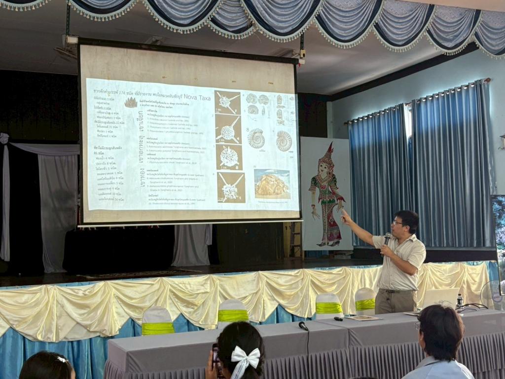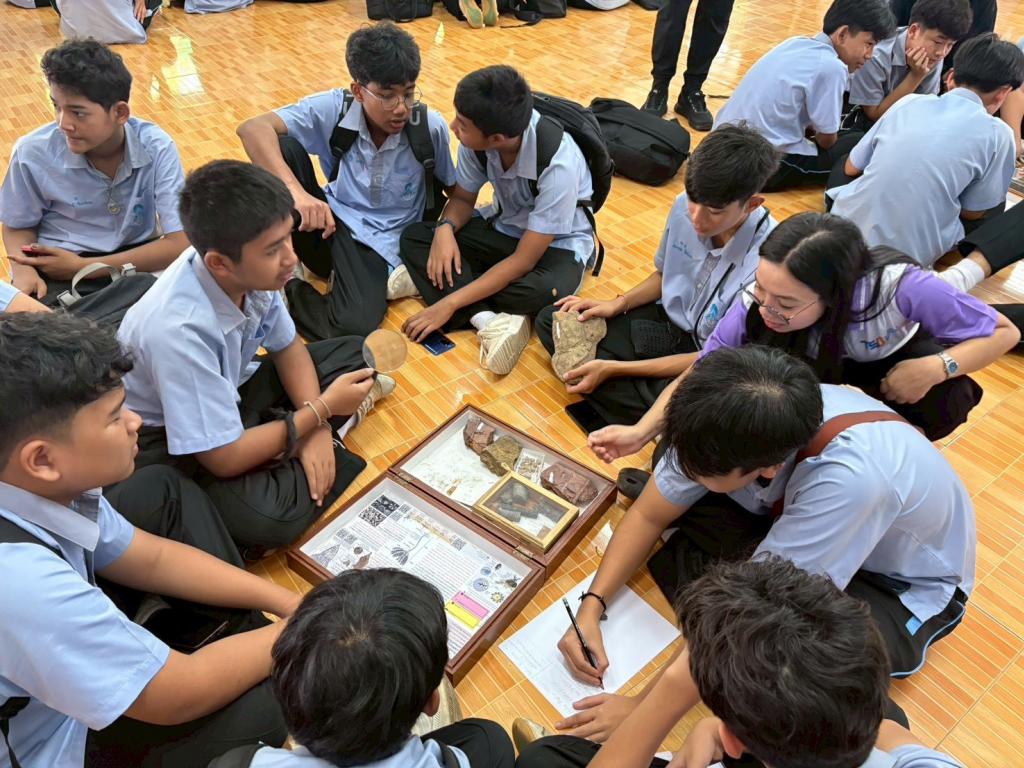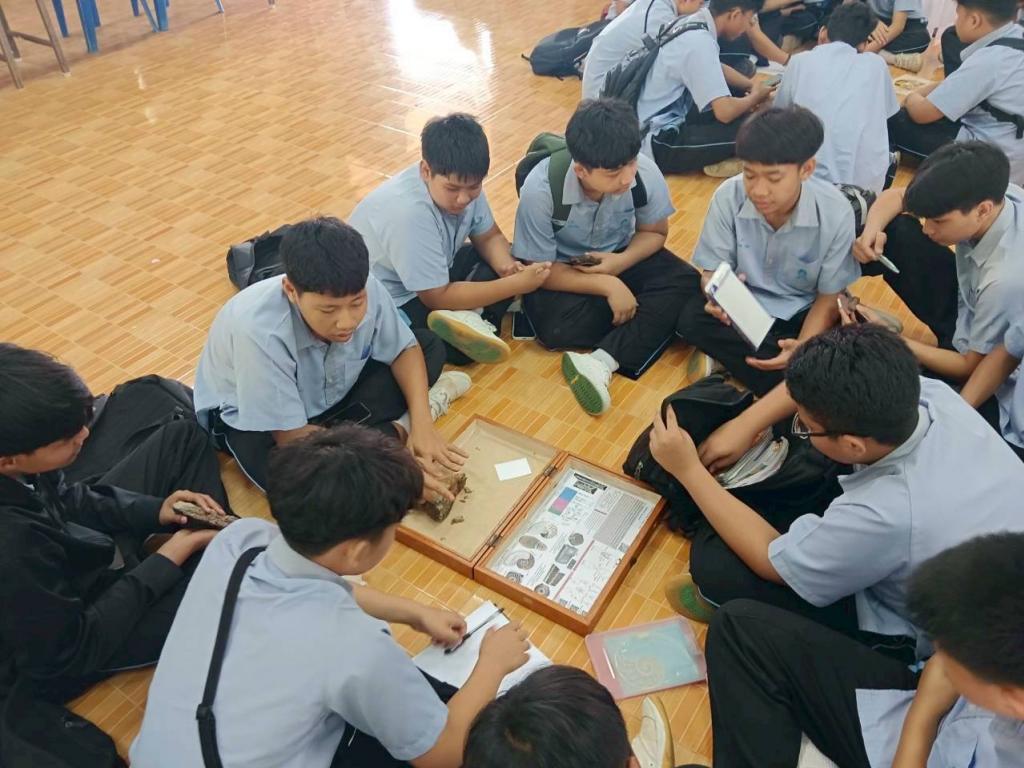 กิจกรรมในช่วงเช้า นักเรียนได้รับฟังการบรรยายในหัวข้อ “โลกบรรพกาล” พร้อมชมกล่องการเรียนรู้ซากดึกดำบรรพ์ และศึกษาประวัติแหล่งซากดึกดำบรรพ์เขาทอง อาทิ การประมาณอายุหิน ชนิดฟอสซิลที่พบ และความสำคัญของพื้นที่ จากนั้นเข้าร่วมกิจกรรมฐานการเรียนรู้ 2 ฐาน ได้แก่