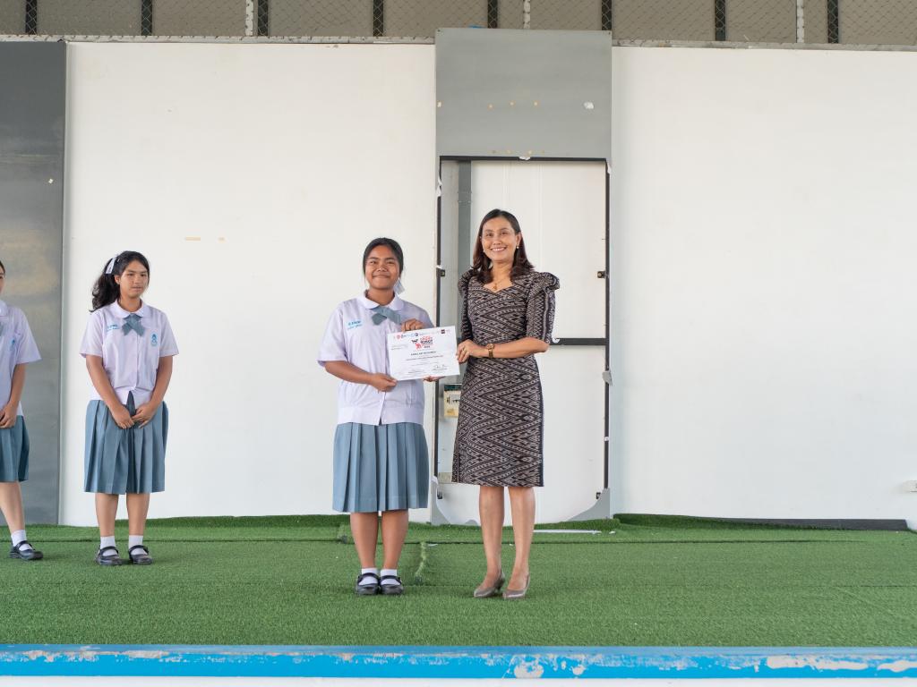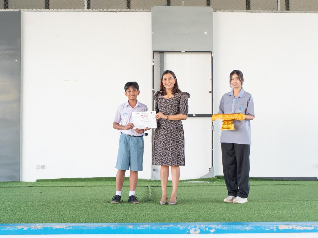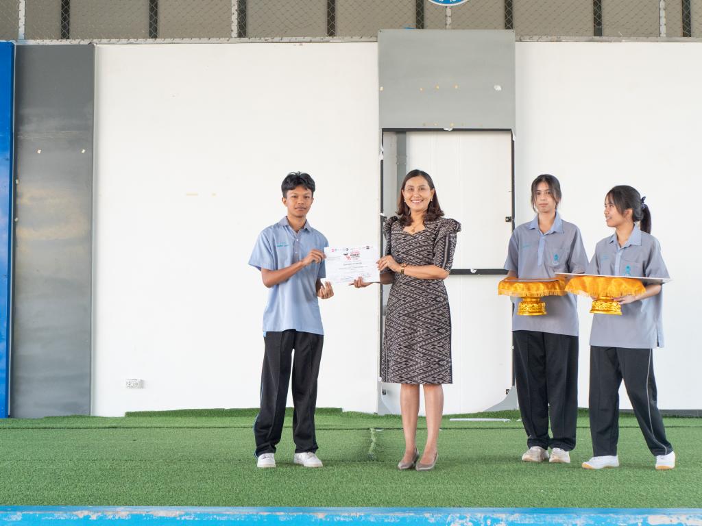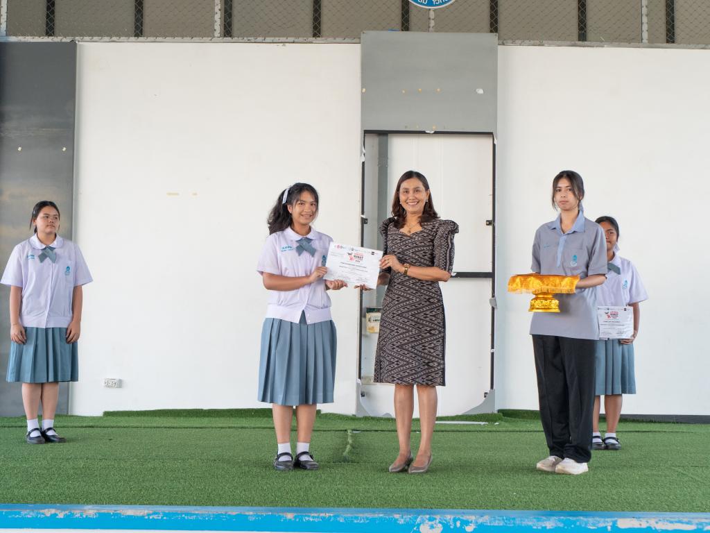 ผู้อำนวยการโรงเรียนสาธิตมหาวิทยาลัยทักษิณ ฝ่ายมัธยม เป็นประธานในการมอบเกียรติบัตรแก่ผู้ได้รับรางวัล