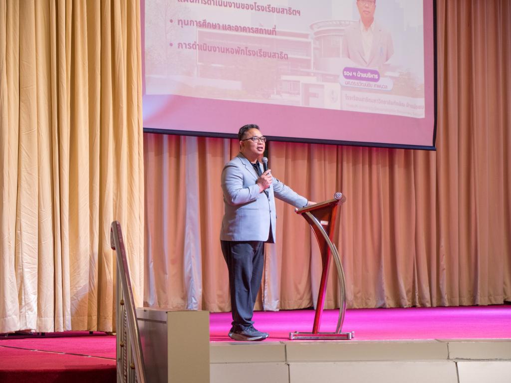 โอกาสนี้ คณะผู้บริหารได้กล่าวแสดงความยินดี พร้อมทั้งแนะนำข้อมูลสำคัญเกี่ยวกับแนวทางการจัดการศึกษา วิสัยทัศน์ หลักสูตร กิจกรรมพัฒนาผู้เรียน ตลอดจนแนวทางการดูแลนักเรียนในด้านวิชาการและคุณลักษณะอันพึงประสงค์ เพื่อสร้างความเข้าใจและความมั่นใจแก่ผู้ปกครองและนักเรียนก่อนเริ่มต้นชีวิตในรั้วสาธิต