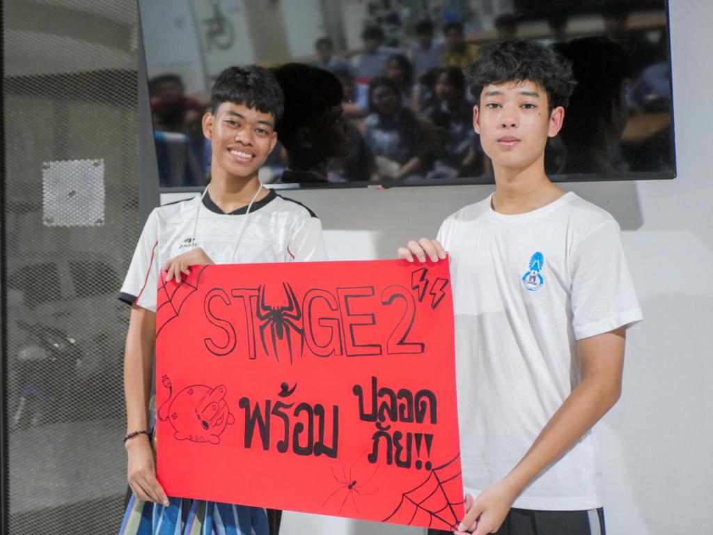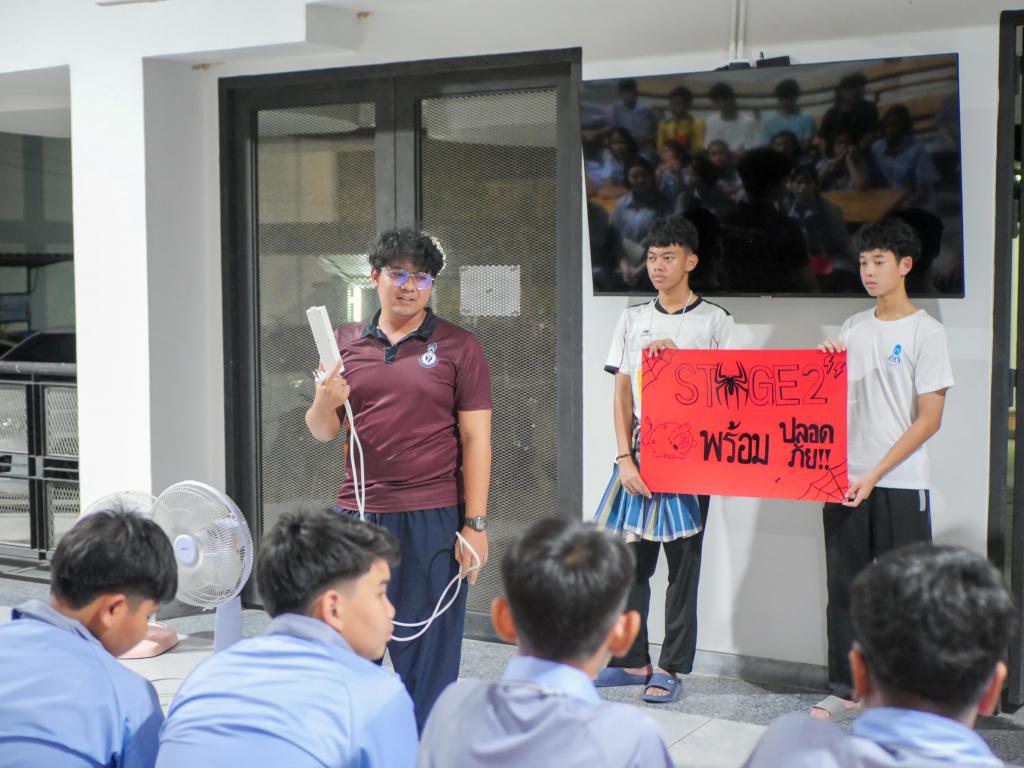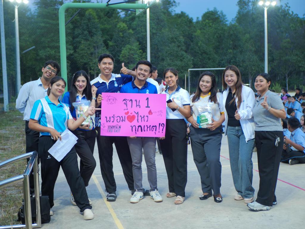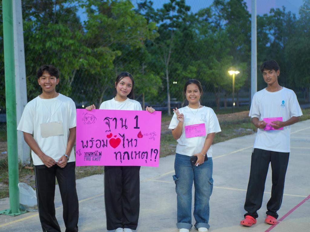 ฐานที่ 1 กรณีมีเหตุฉุกเฉิน “พร้อมใจ ไหวทุกเหตุ!” ฝึกจำลองสถานการณ์ฉุกเฉิน เช่น ไฟไหม้ ผู้ได้รับบาดเจ็บ การตั้งสติ การแจ้งเหตุ และการอพยพอย่างถูกวิธี
